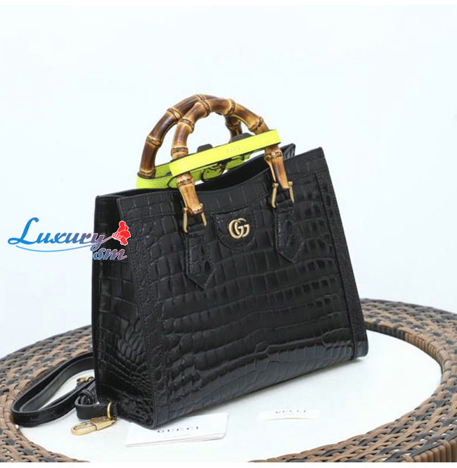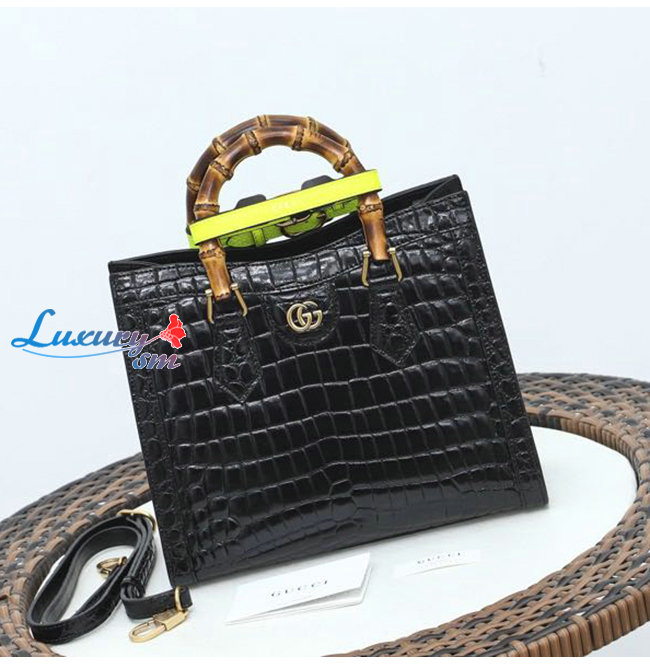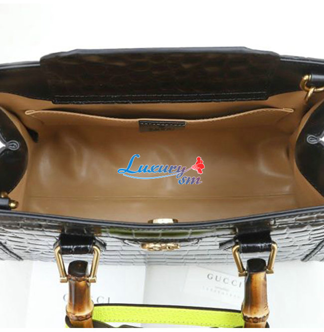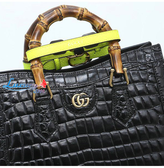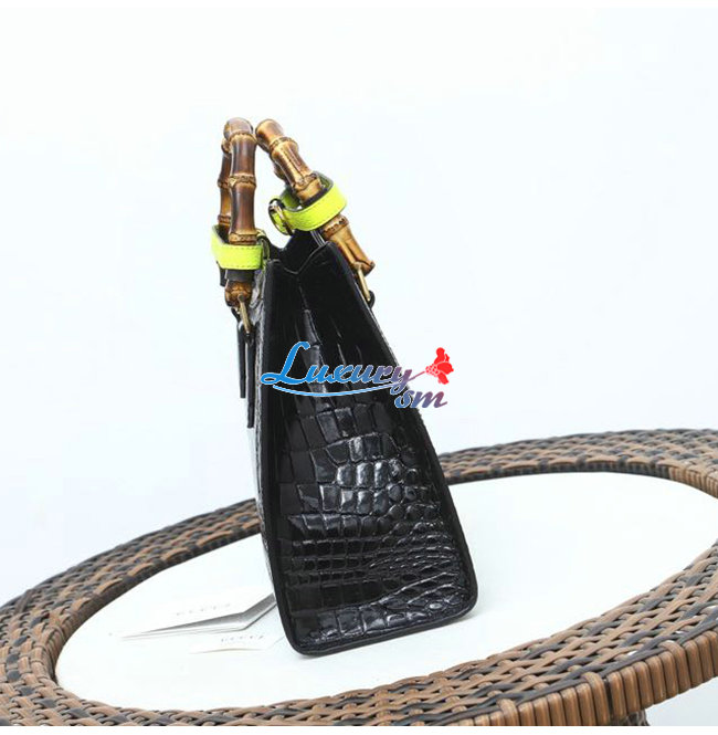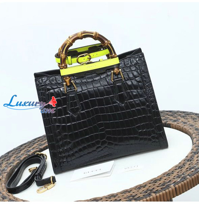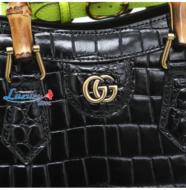[스페셜오더]GUCCI-660195 1175 구찌 블랙 크로커다일 가죽 다이애나 뱀부 핸들 스몰 토트백