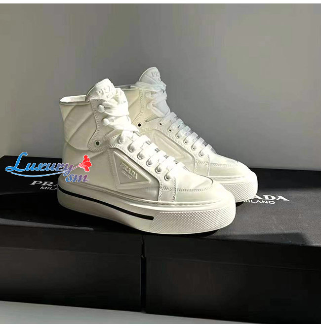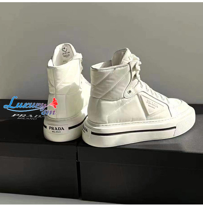 PRADA-2TG183 프라다 화이트 매크로 리나일론 하이탑 스니커즈