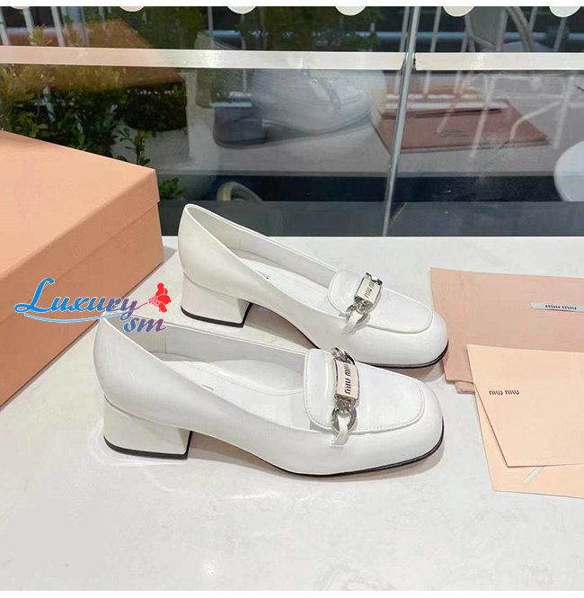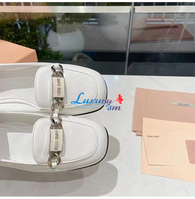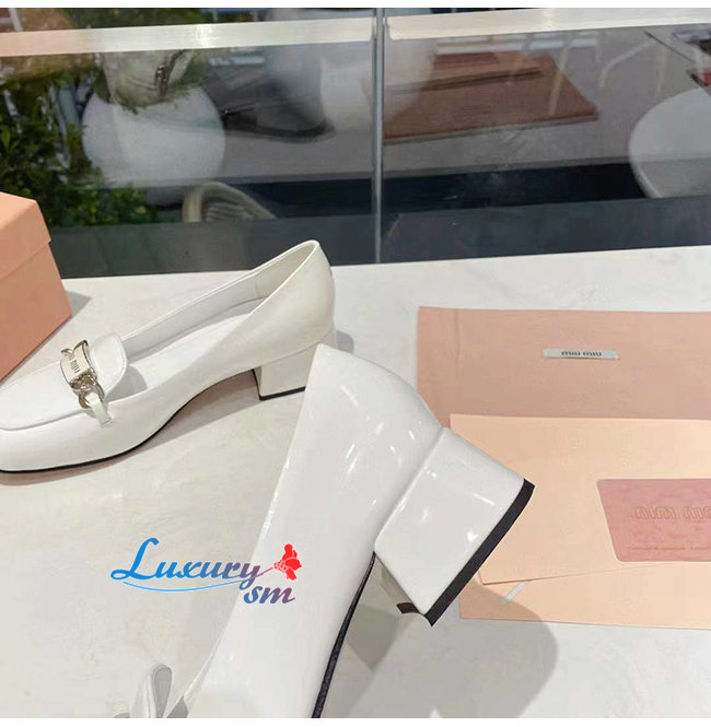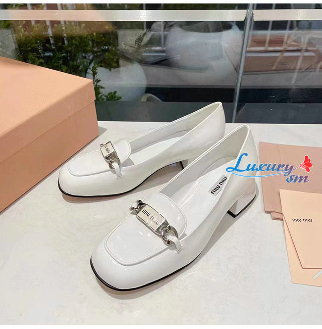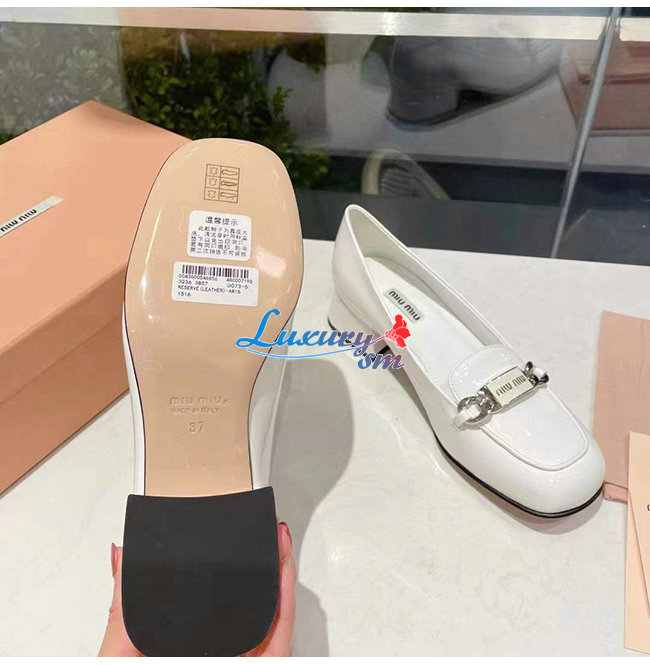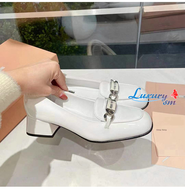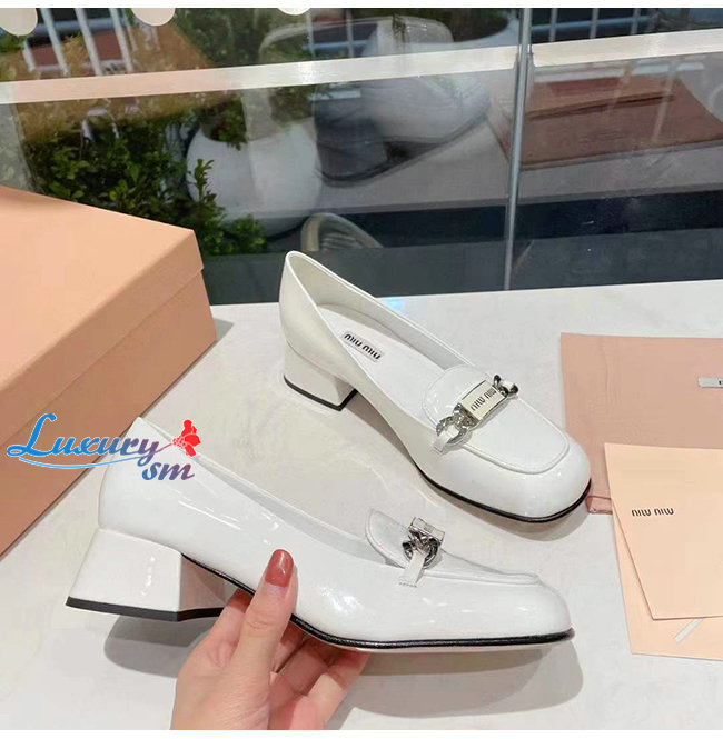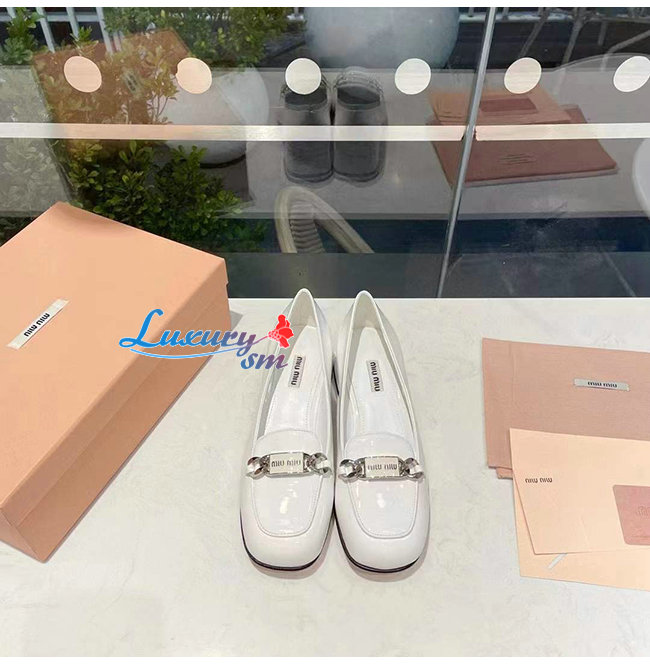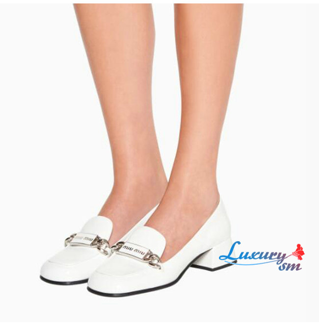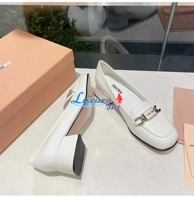 MIUMIU-5D658D 미우미우 화이트 페이턴트 가죽 로퍼