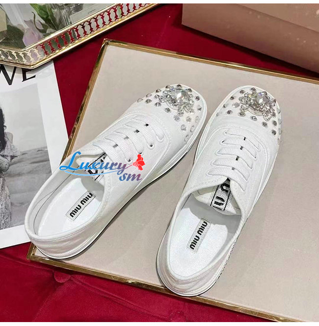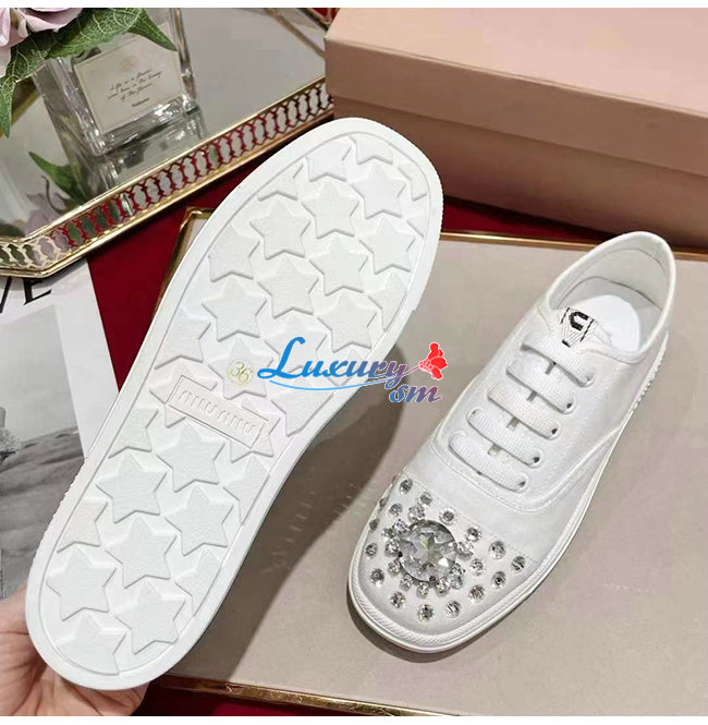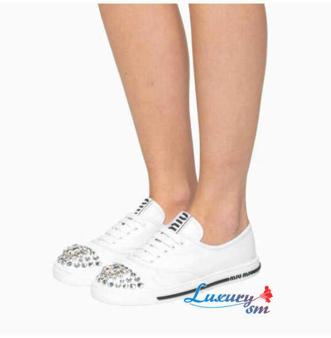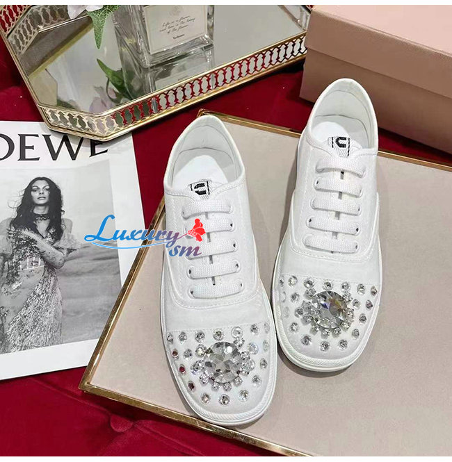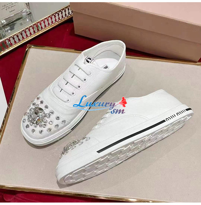 MIUMIU-5E450D 미우미우 화이트 코튼 개버딘 스니커즈