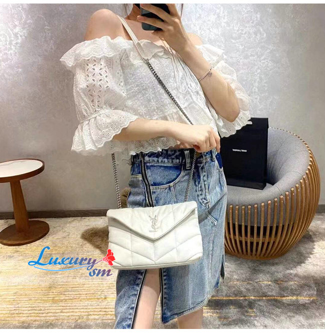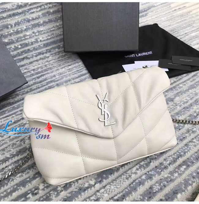 [스페셜오더]SAINT LAURENT-620333 생 로랑 화이트 퀼트 램스킨 실버 메탈 퍼퍼 미니백