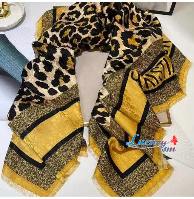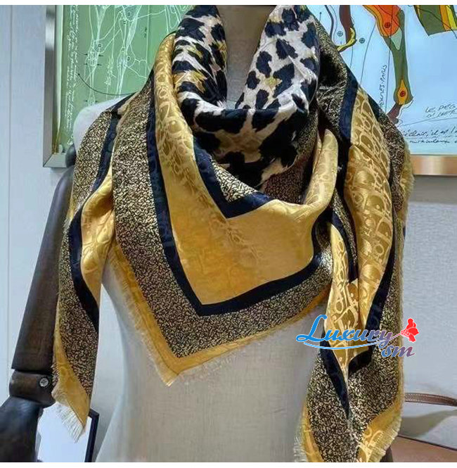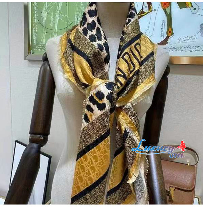 DIOR-15LEO09 디올 베이지 실크 DIORTWIN MIZZA 스퀘어 스카프