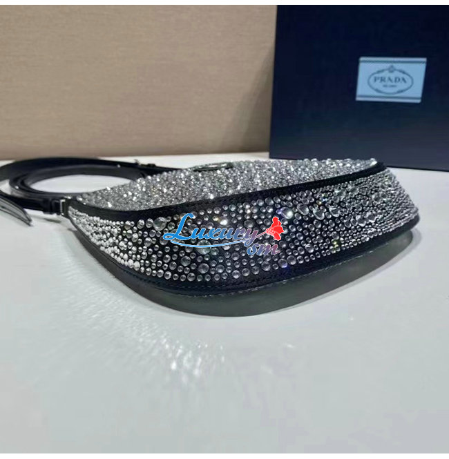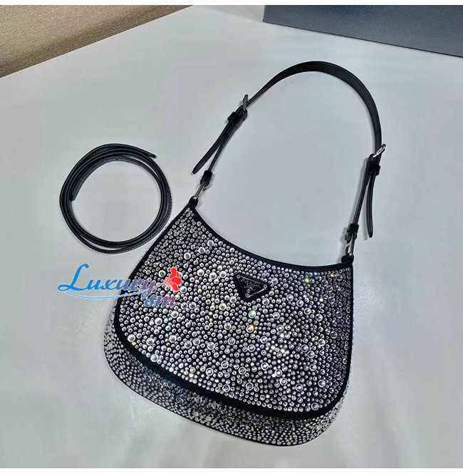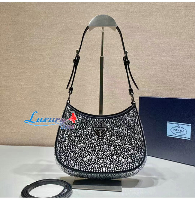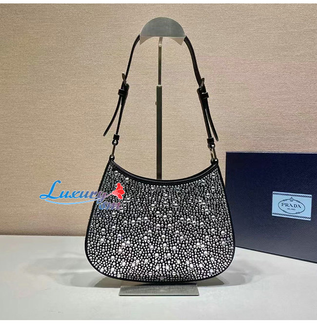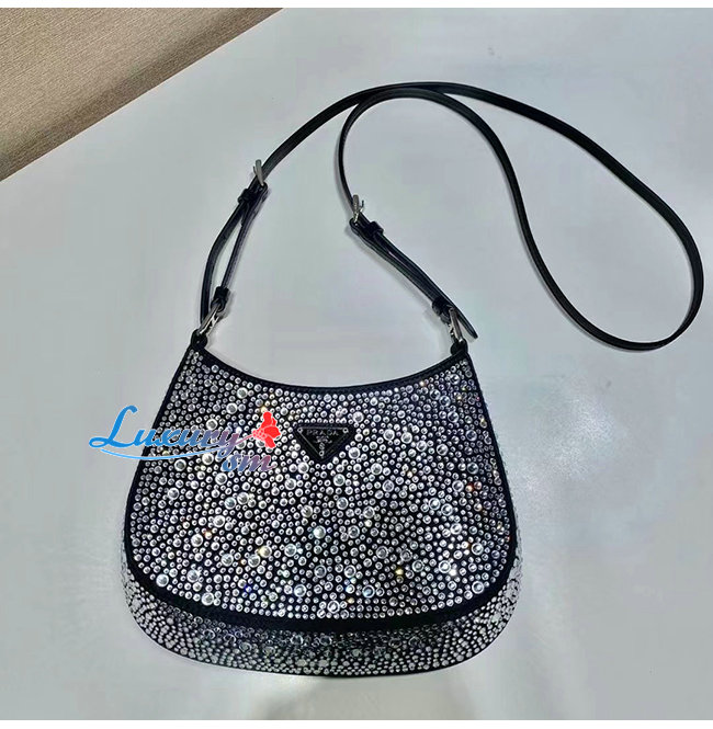 한 프라다 클레오 백으로, 다양한 크기로 반짝이