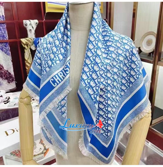 DIOR-15DOB07 디올 콘플라워 블루 DIORTWIN DIOR OBLIQUE 스퀘어 스카프