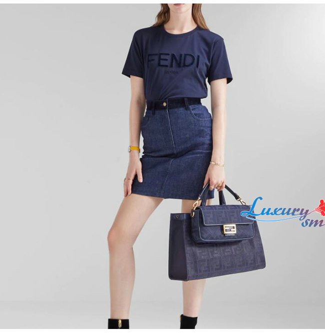 [스페셜오더]FENDI-8BR600 펜디 블루 더블 F 데님 페브릭 바게트 라지