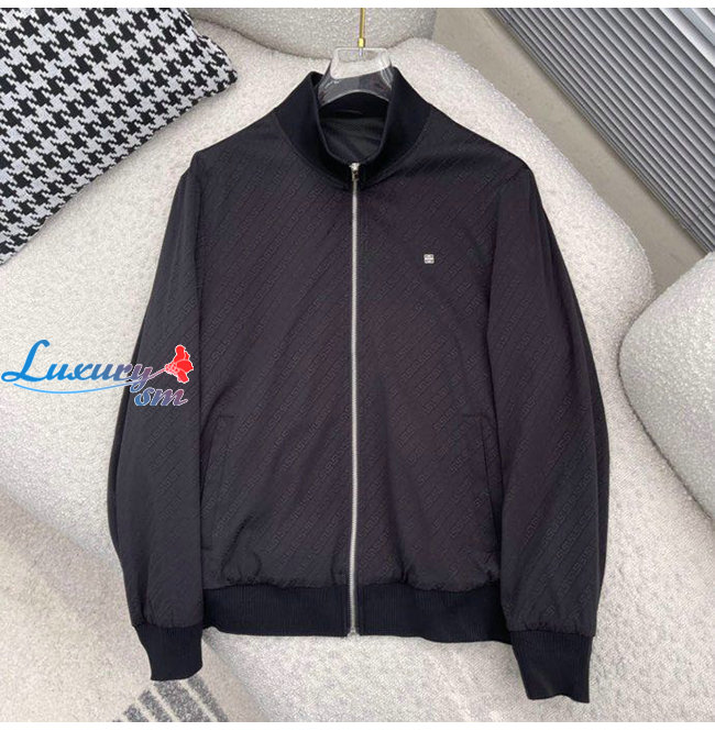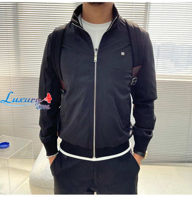 GIVENC**-03203 지방시 블랙 메탈 로고 디테일 바람막이 재킷 남성용