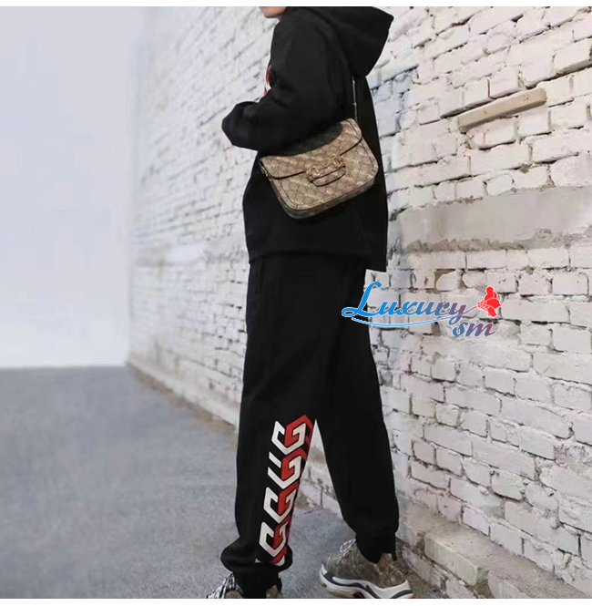 GUCC*-02253 구찌 블랙 프린트 장식 스웨트팬츠 남여공용