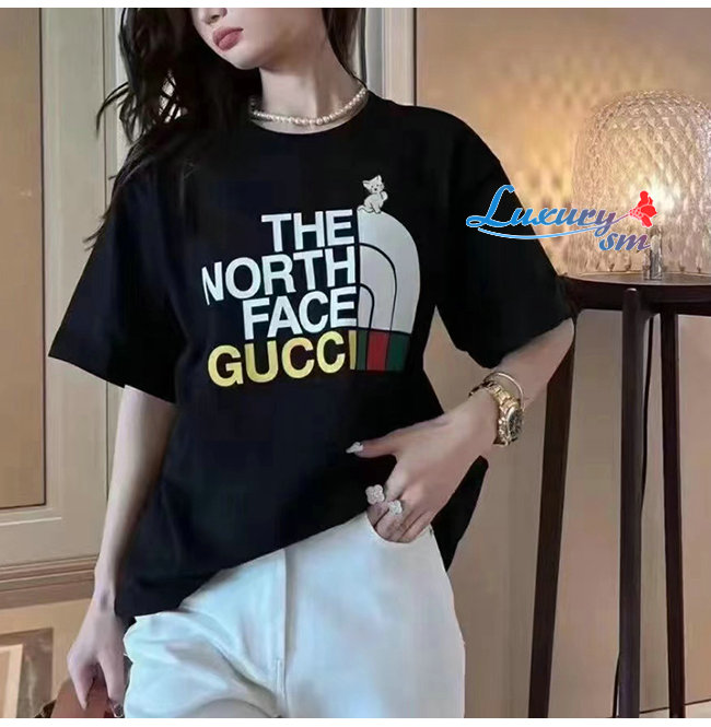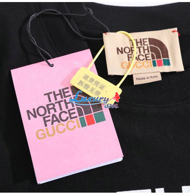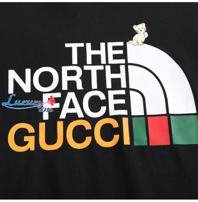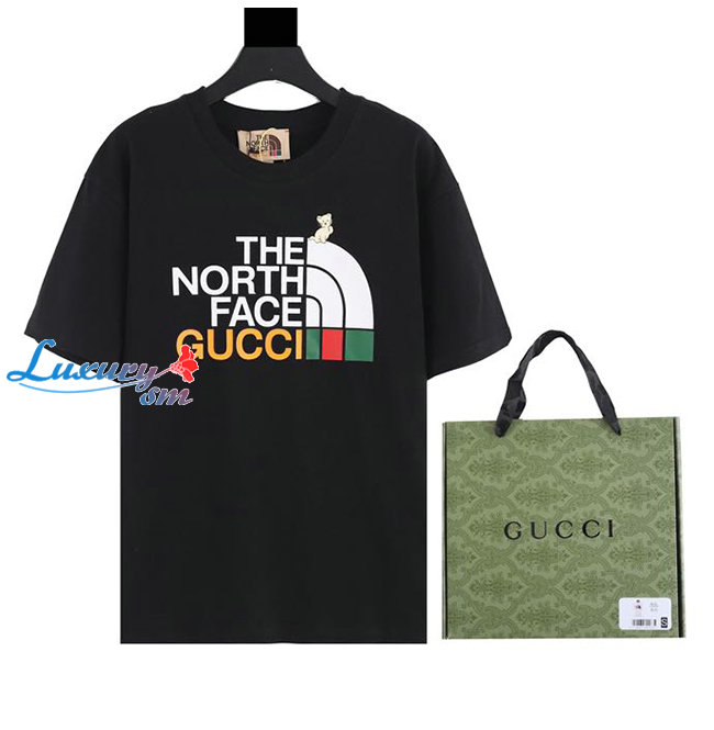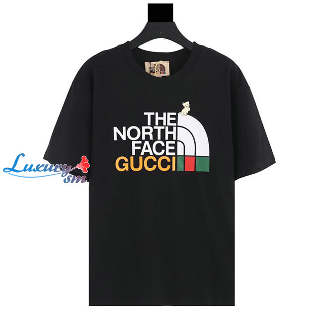 GUCC*-02228 구찌 블랙 구찌 X 노스페이스 콜라보 프린트 장식 티셔츠 남여공용