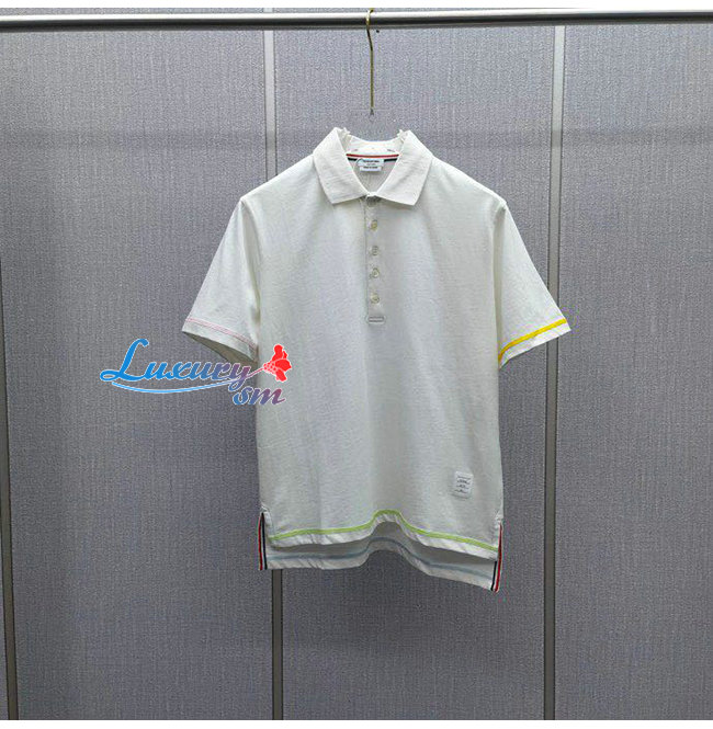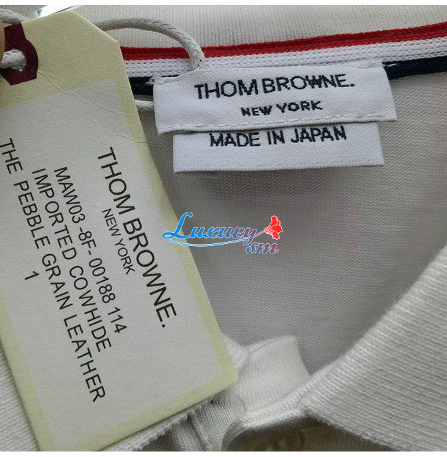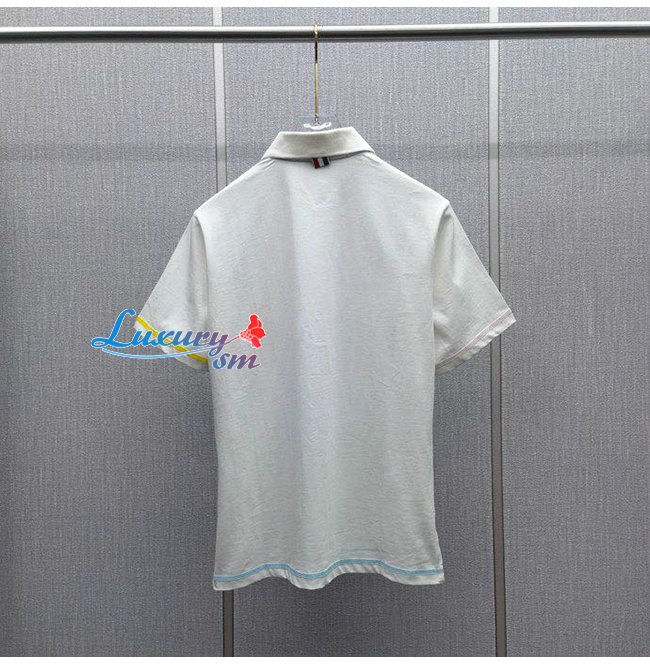 THOM BROW**-04016 톰 브라운 화이트 코튼 폴로 티셔츠 남성용