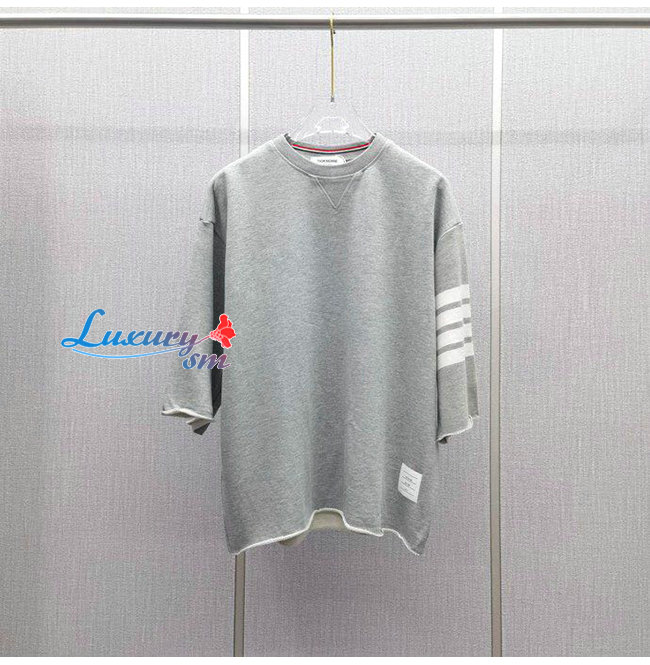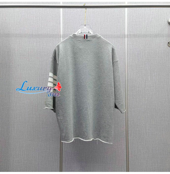 THOM BROW**-040113 톰 브라운 그레이 스트라이프 장식 티셔츠 남성용