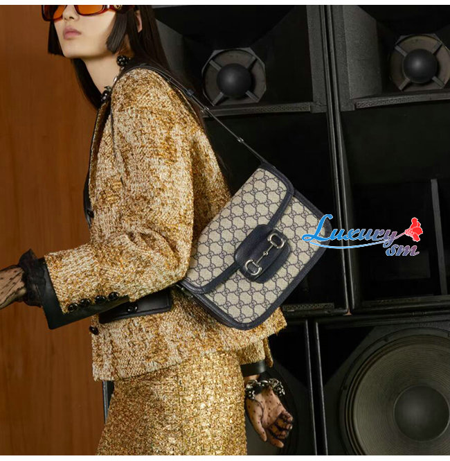 [스페셜오더]GUCC*-602204 4075 구찌 베이지/블루 구찌 홀스빗 1955 스몰 핸드백