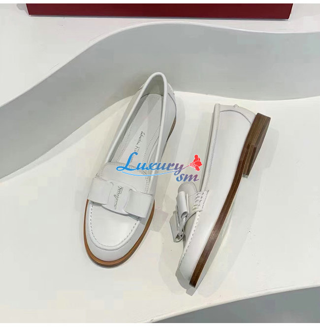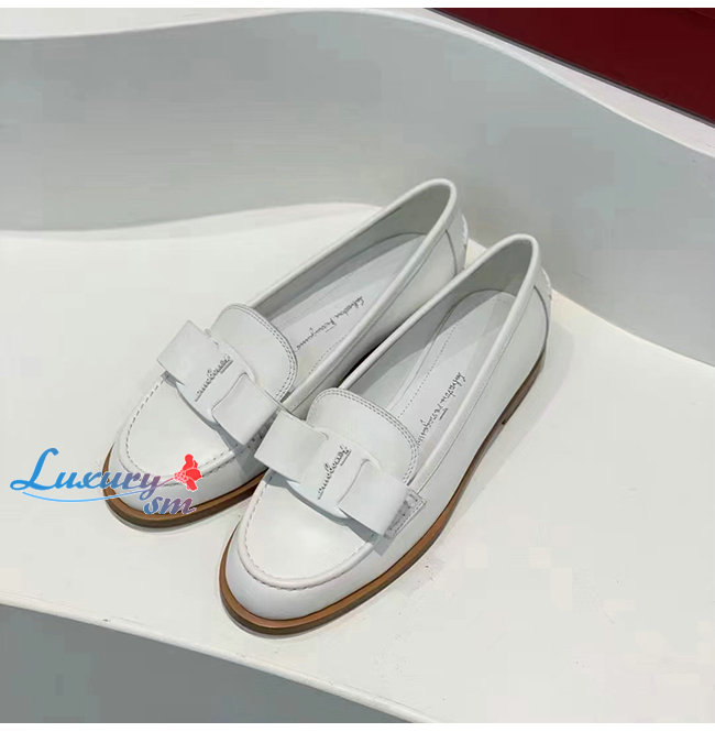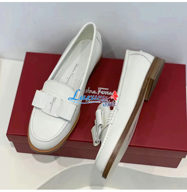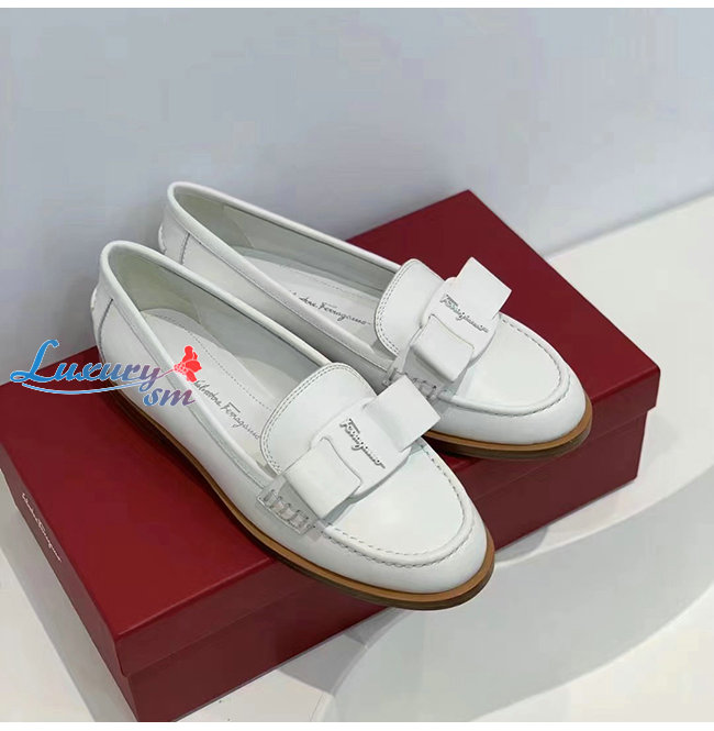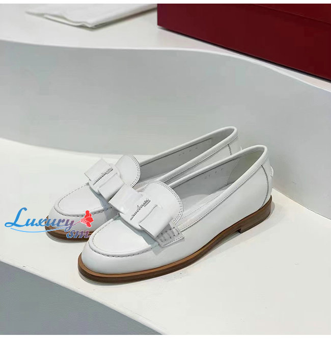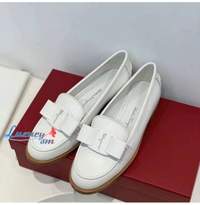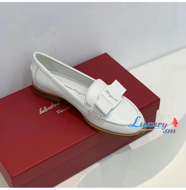 Ferraga**-01C952 페라가모 화이트 라미네이트 레더 비바 로퍼