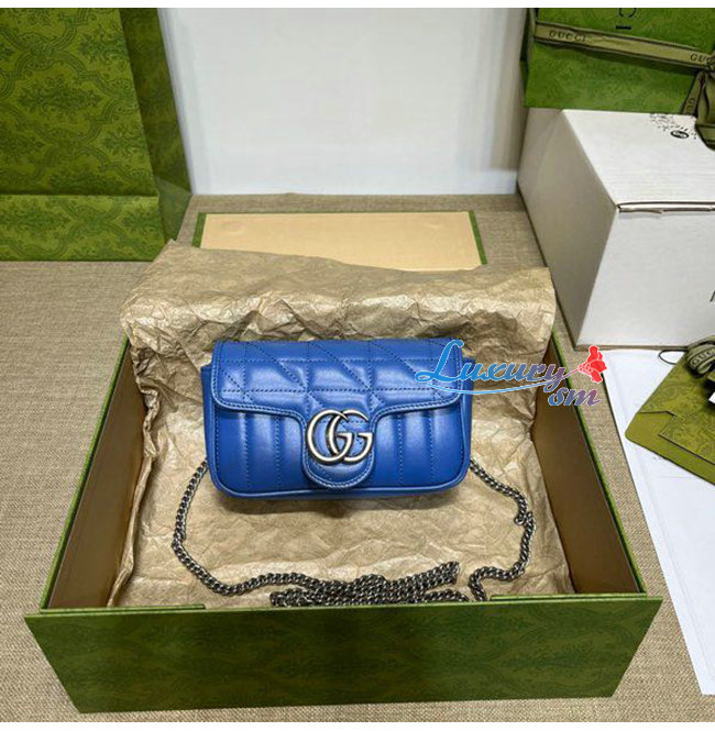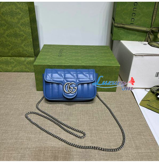 [스페셜오더]GUCCI-476433 4340 구찌 GG 마몽 블루 가죽 수퍼 미니백