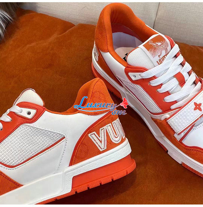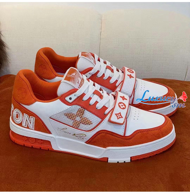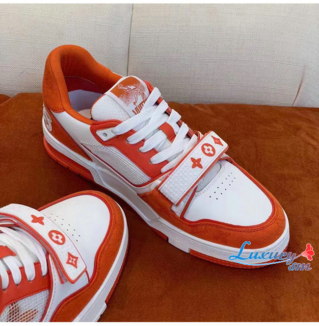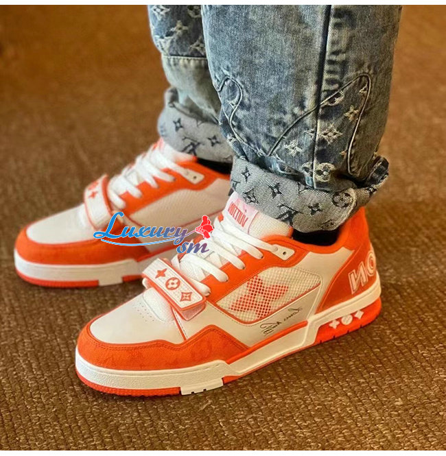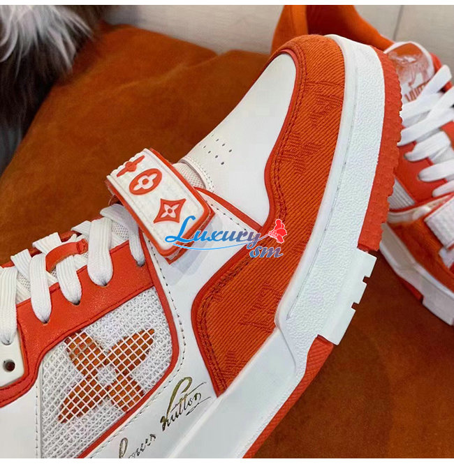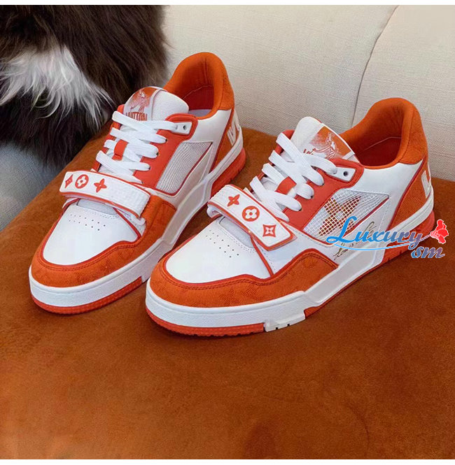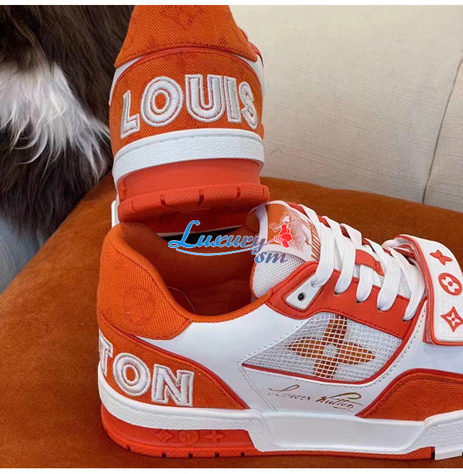 LOUIS VUITT**-1A9ZBB 루이비통 오렌지 모노그램 데님 LV 트레이너 스니커즈 남여공용