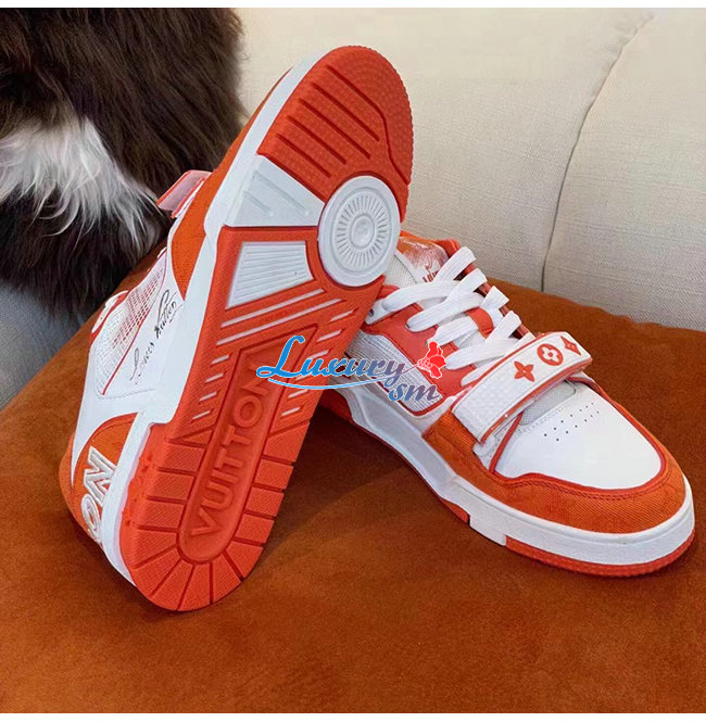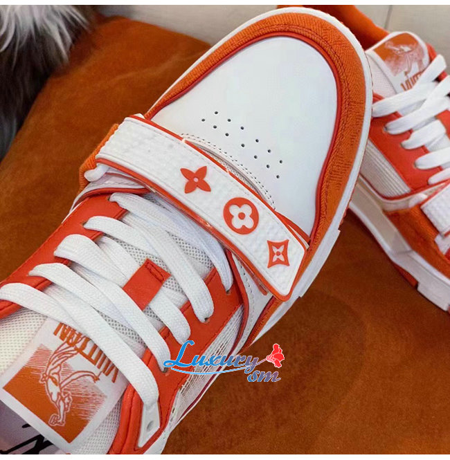 [스페셜오더]LOUIS VUITTON-1A811H 루이비통 오렌지 모노그램 엠보스드 그레인 송아지 가죽 LV 트레이너 스니커즈 가격 : 320,000원