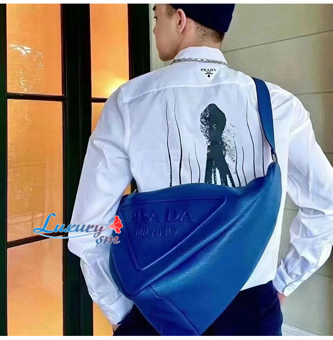[스페셜오더]PRADA-2VY007 프라다 블루 송아지 가죽 라지 트라이앵글 백