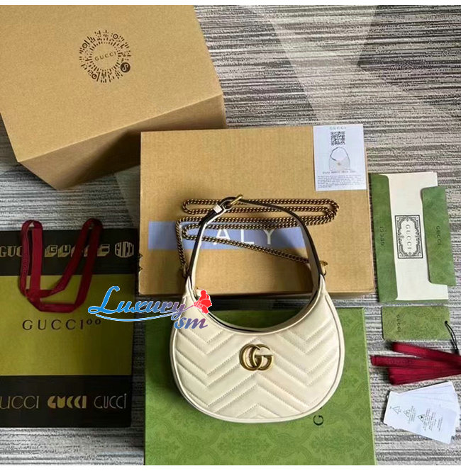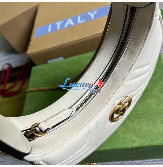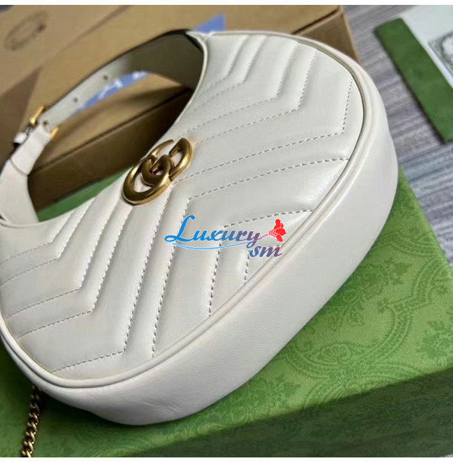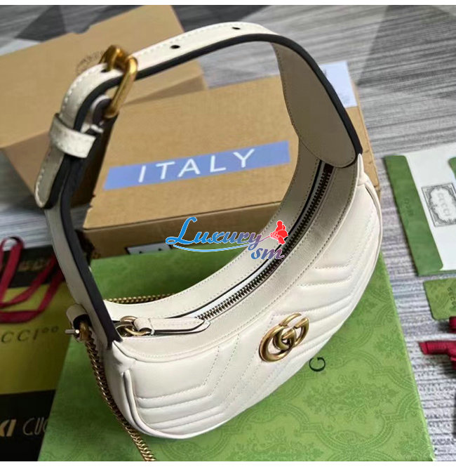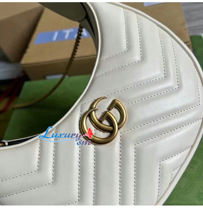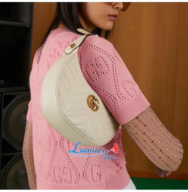 [스페셜오더]GUCCI-699514 9022 구찌 화이트 GG 마몽 하프문 쉐입 미니백