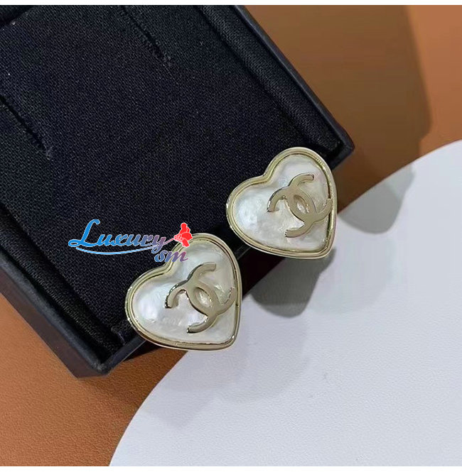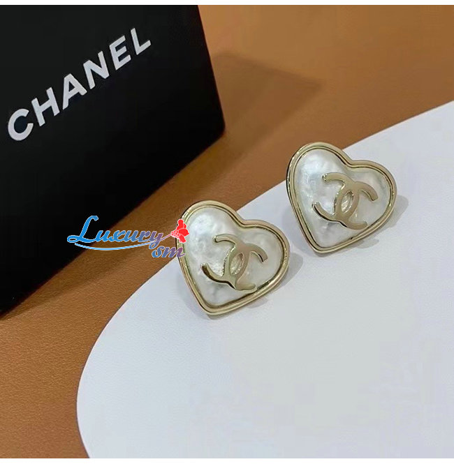 CHANEL-06091 샤넬 골드/화이트 하트 모티프 이어링