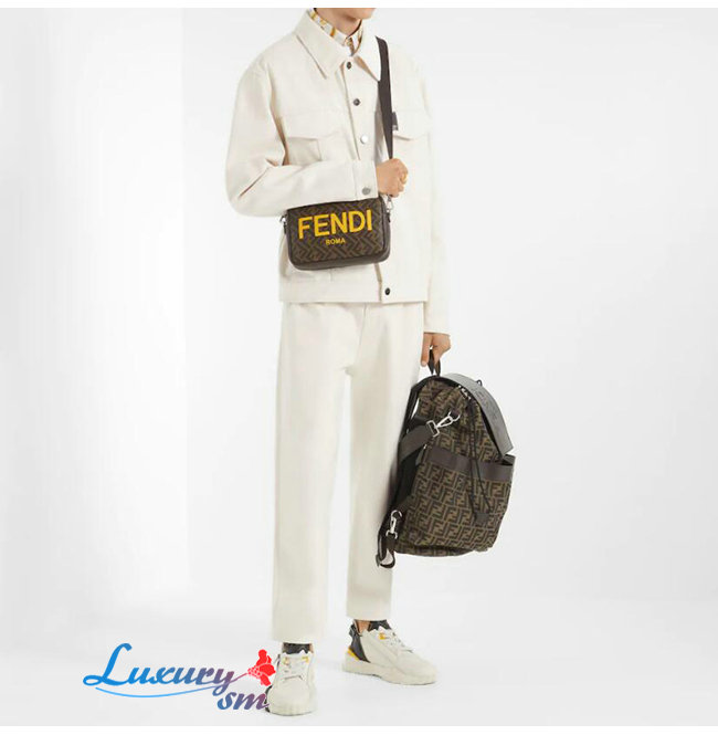 가죽 소재에 FF 자카드 패브릭 디테일.