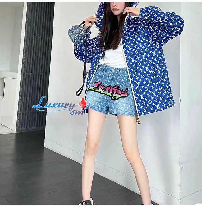 LOUIS VUITTON-06289 루이비통 블루 아플리케 장식 모노그램 청반바지 여성용