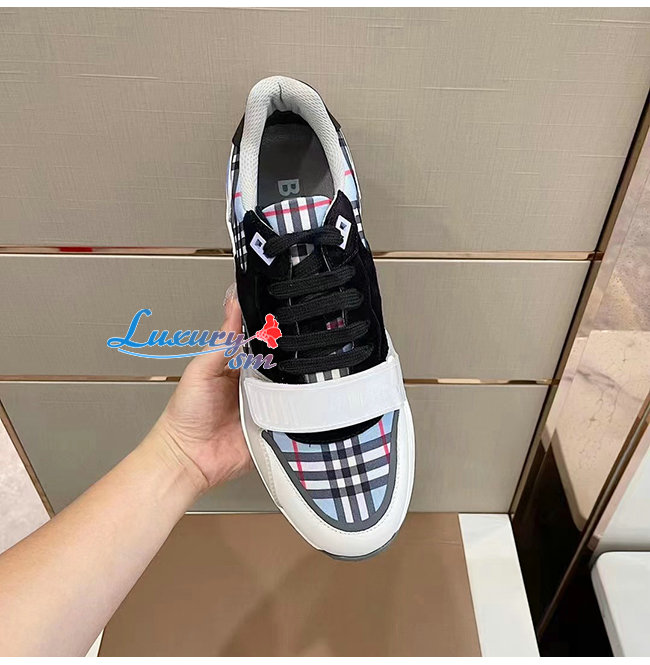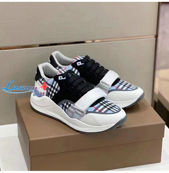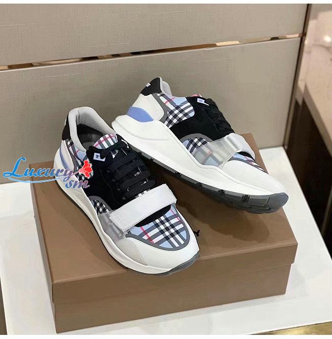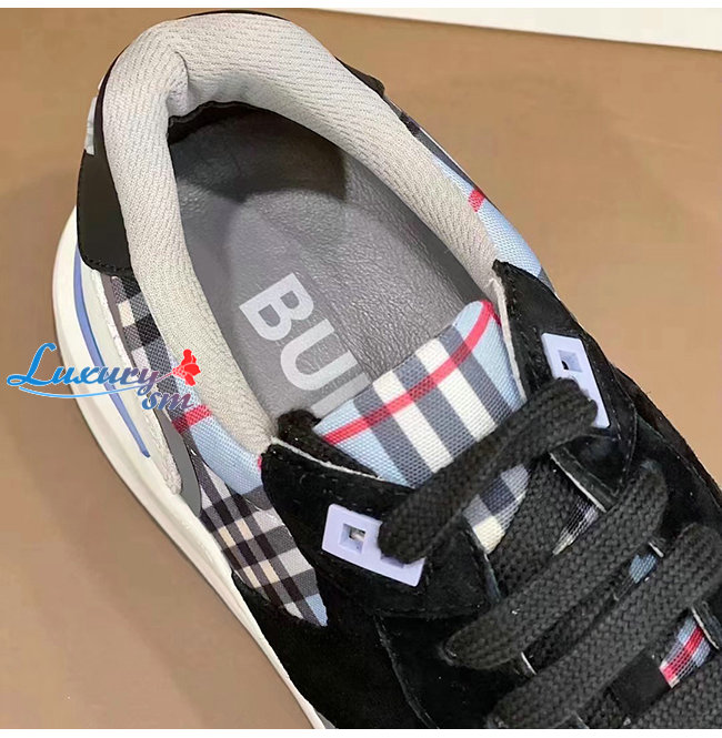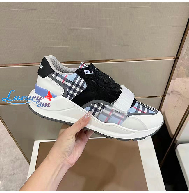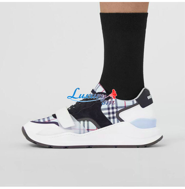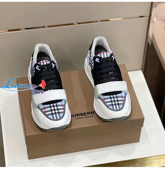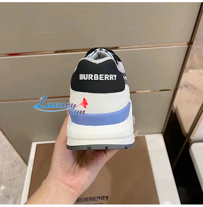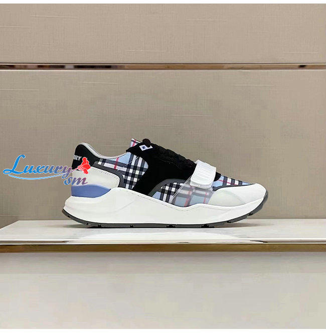 BURBERRY-80514151 버버리 페일 블루 체크 나일론 레더 스웨이드 스니커즈