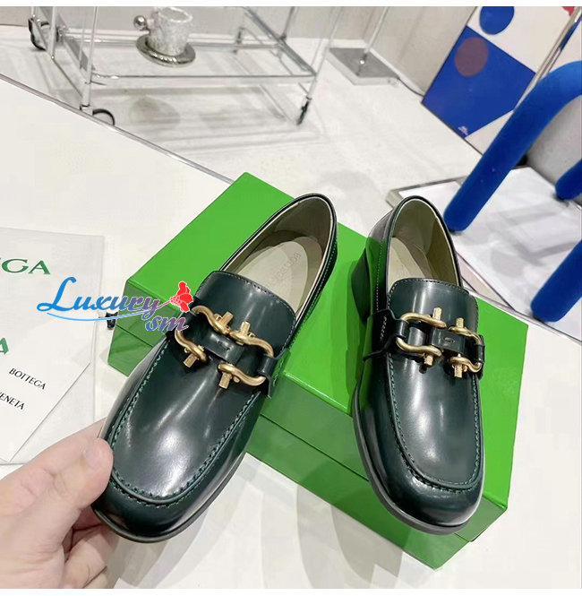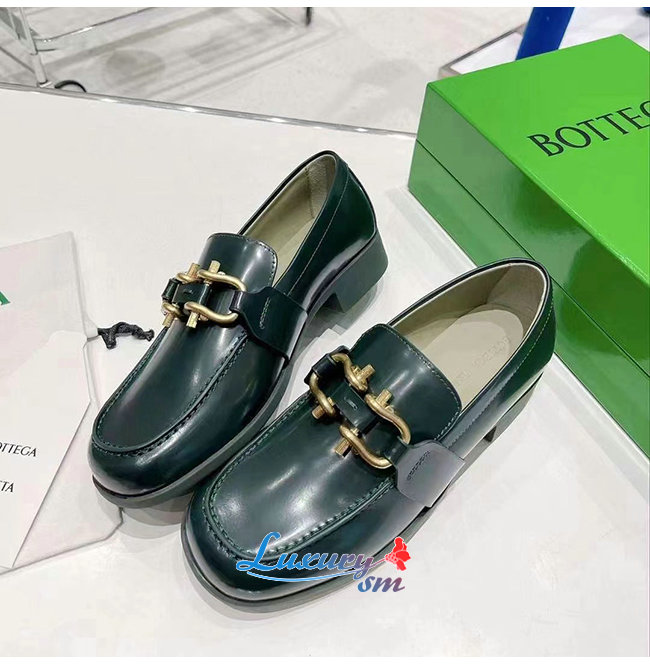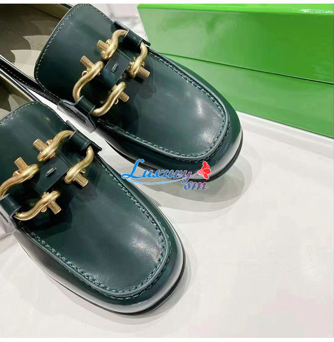 BOTTEGA VENETA-708902 보테가 베네타 다크 그린 카프스킨 무슈 로퍼 여성용
