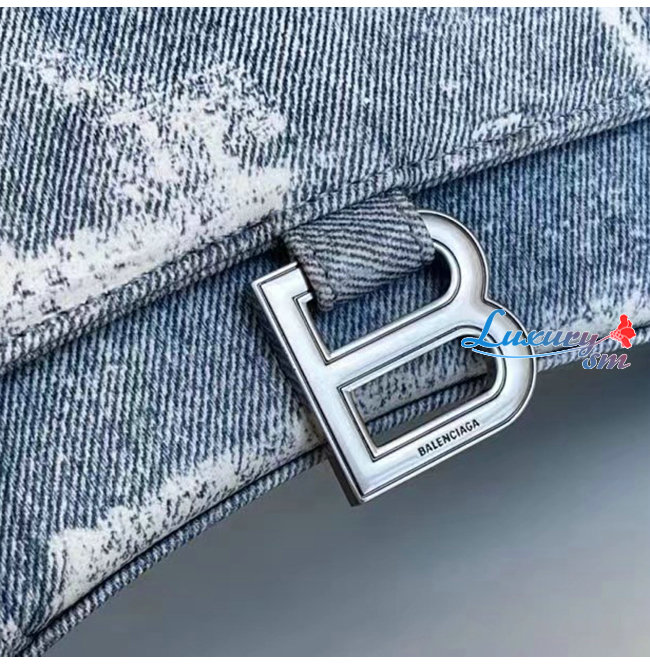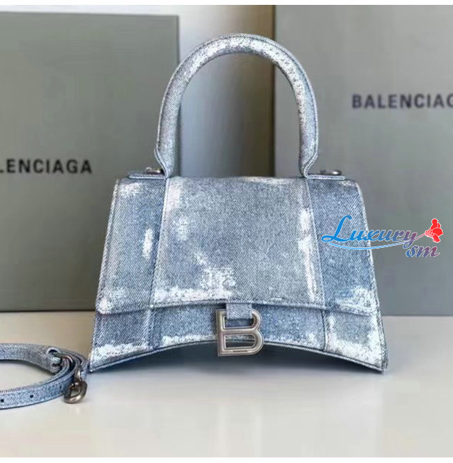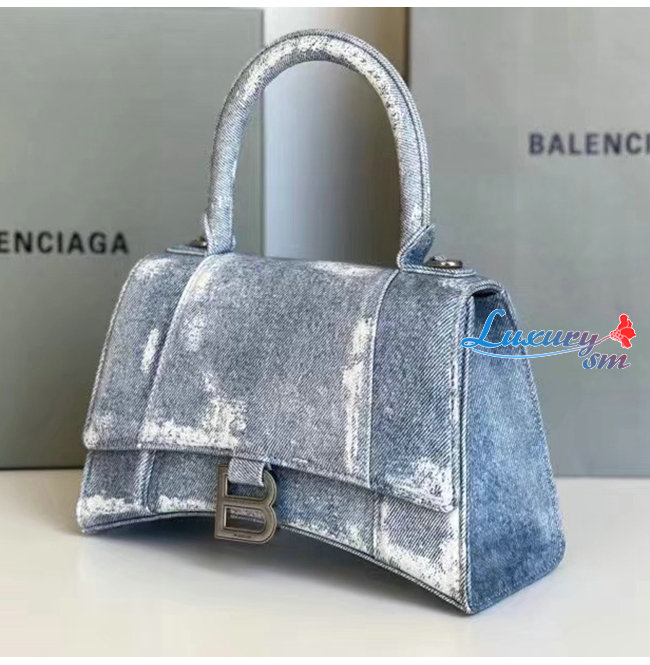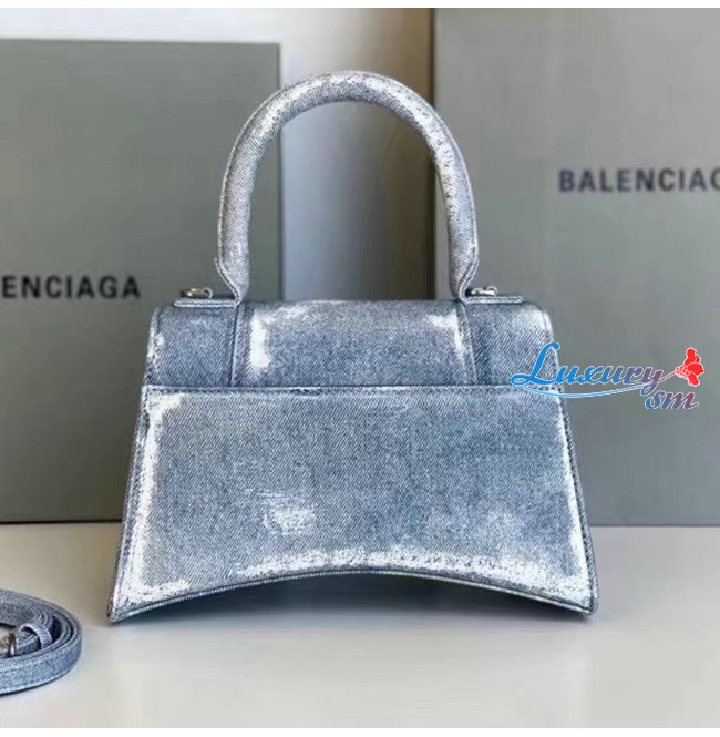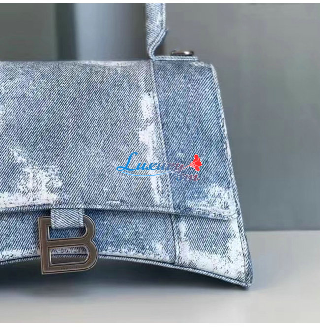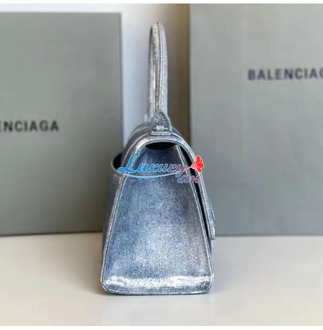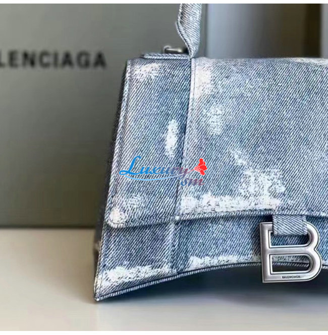 [스페셜오더]BALENCIAGA-593546 발렌시아가 라이트 블루 데님 프린트 HOURGLASS 스몰 핸드백