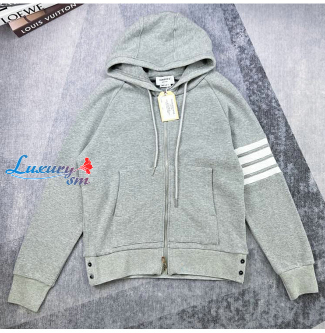 THOM BROWNE-08129 톰 브라운 그레이 스트라이프 장식 후드 재킷 남여공용