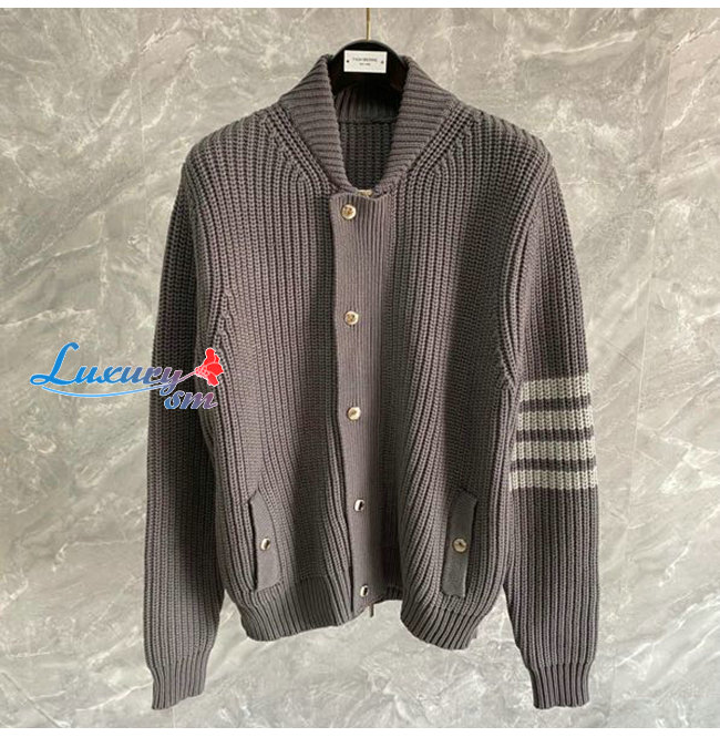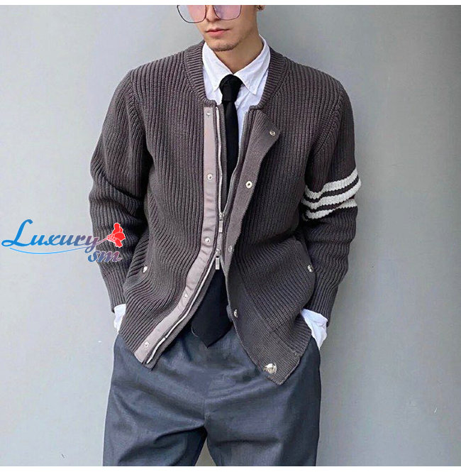 THOM BROWNE-08026 톰 브라운 그레이 스트라이프 장식 가디건 남여공용