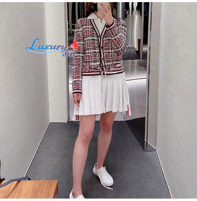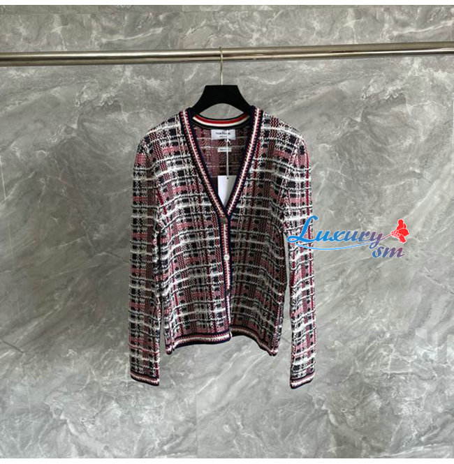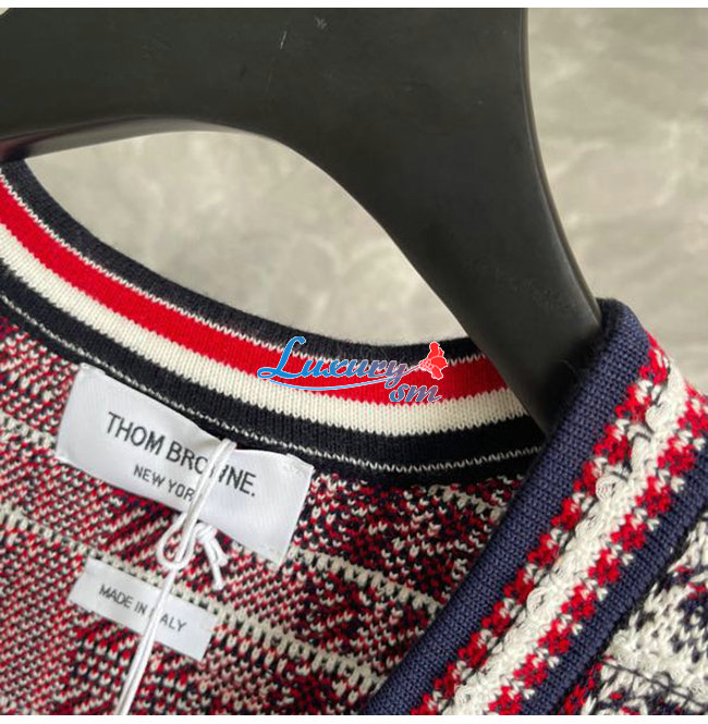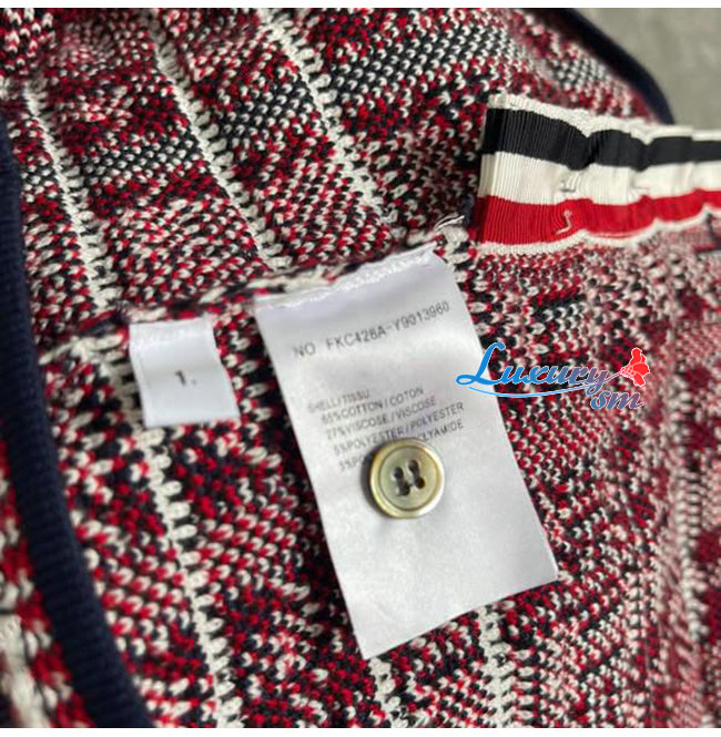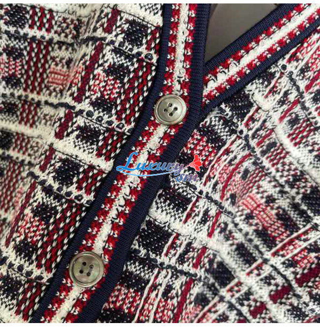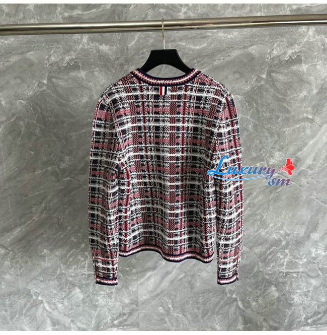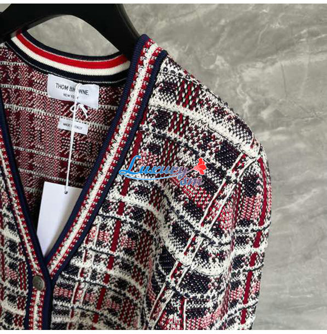 THOM BROWNE-08303 톰 브라운 레드/네이비 트위드 가디건 여성용