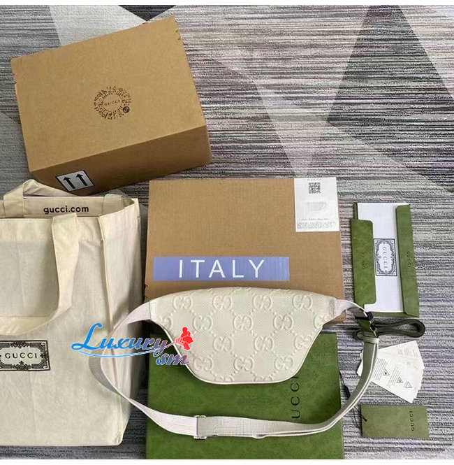 [스페셜오더]GUCCI-658582 9022 구찌 화이트 GG 엠보스 레더 벨트백