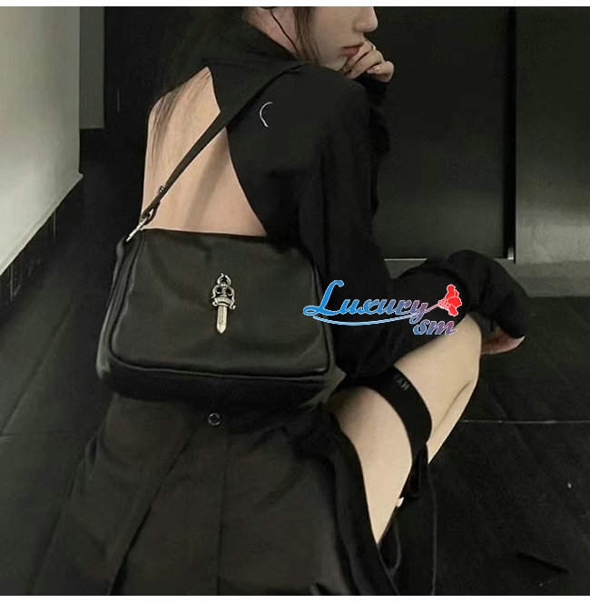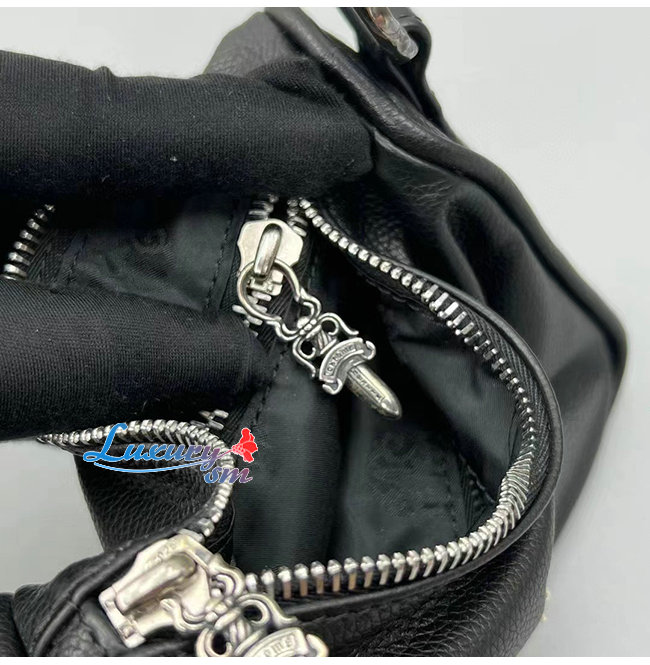 [스페셜오더]CHROMEHEARTS-7914 크롬하츠 블랙 카프스킨 메탈 장식 호보백