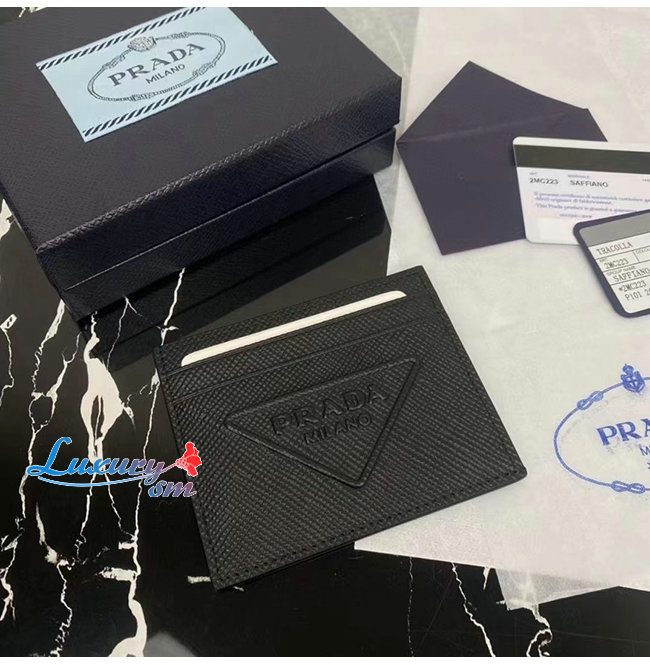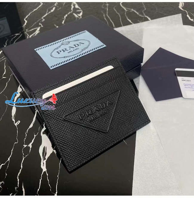 [스페셜오더]PRADA-2MC223 프라다 블랙 엠보싱 트라이앵글 로고 카드 홀더