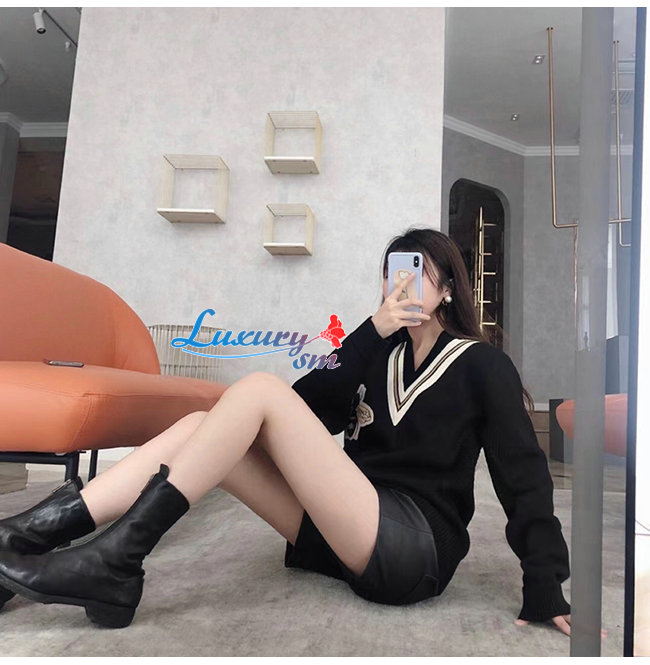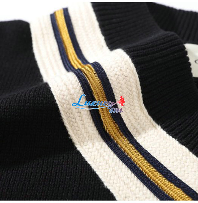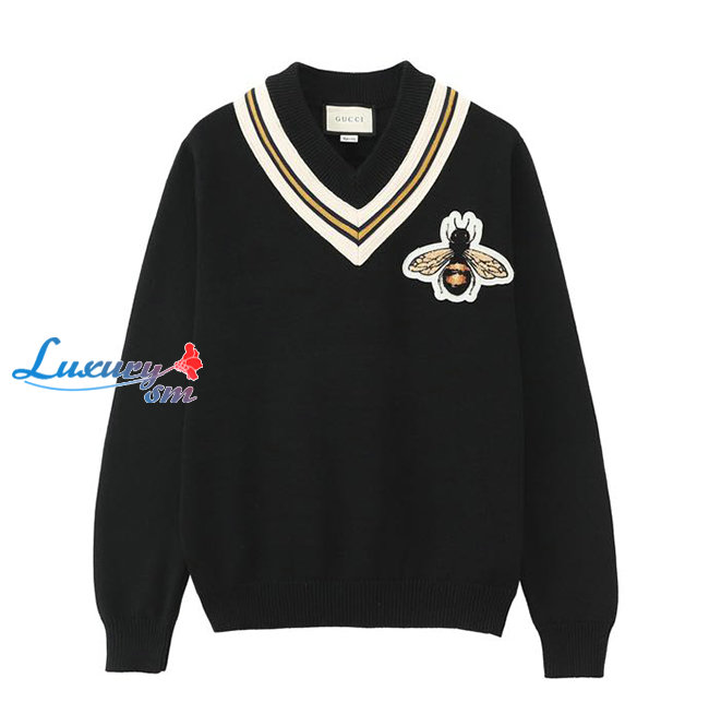 GUCCI-091315 구찌 블랙 꿀벌 아플리케 장식 V넥 스웨터 남여공용