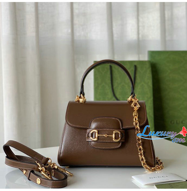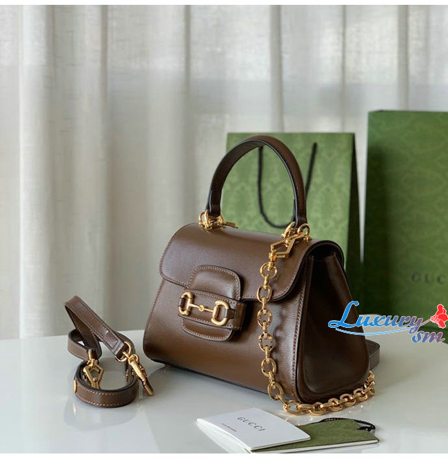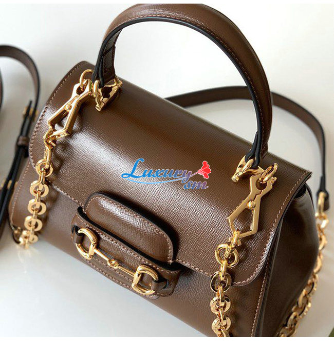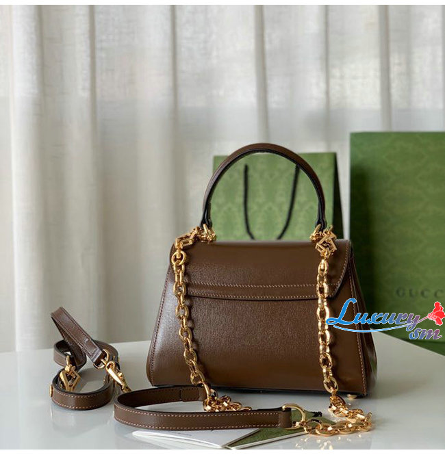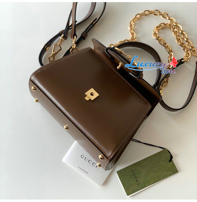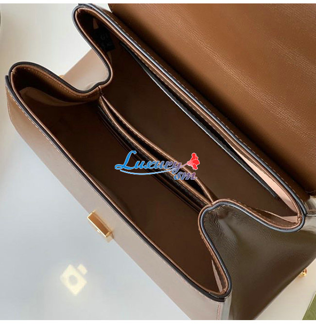 탑 핸들백으로 선보이는 브라운 레더 소재 구찌