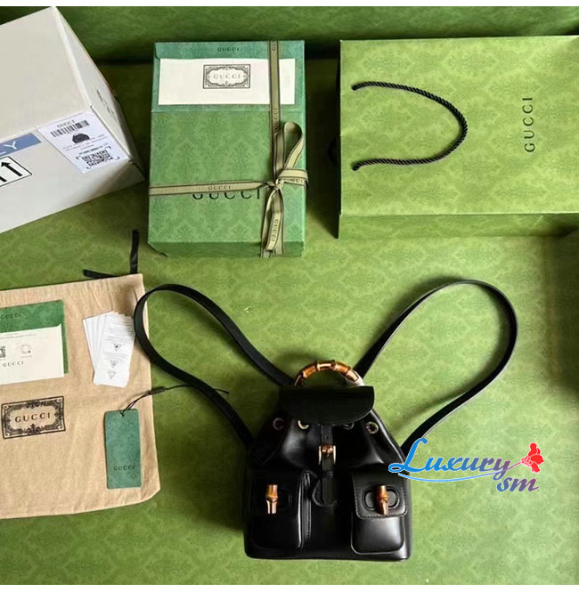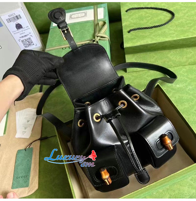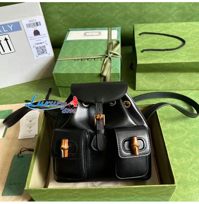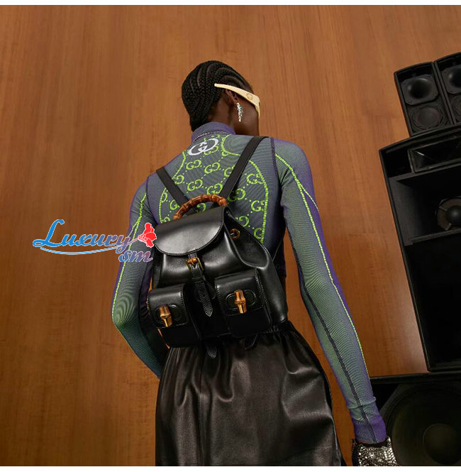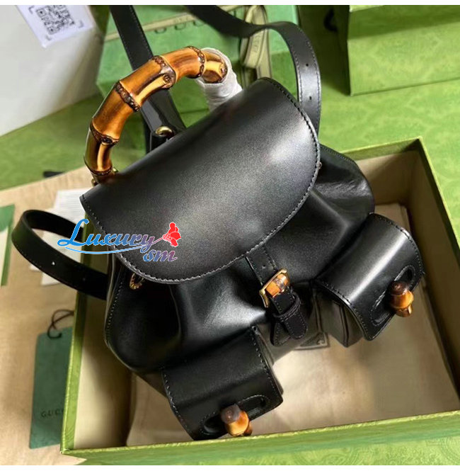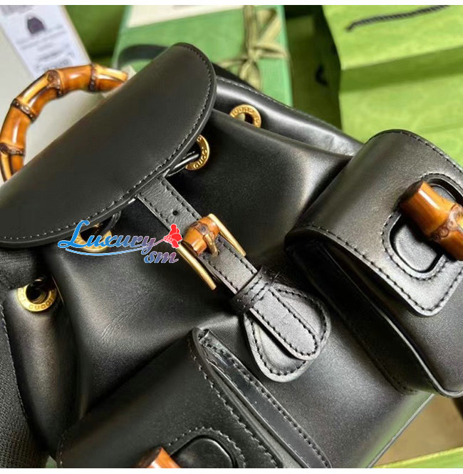 [스페셜오더]GUCCI-702101 1000 구찌 블랙 가죽 뱀부 백팩