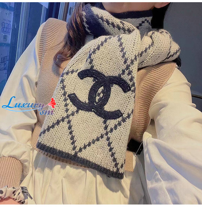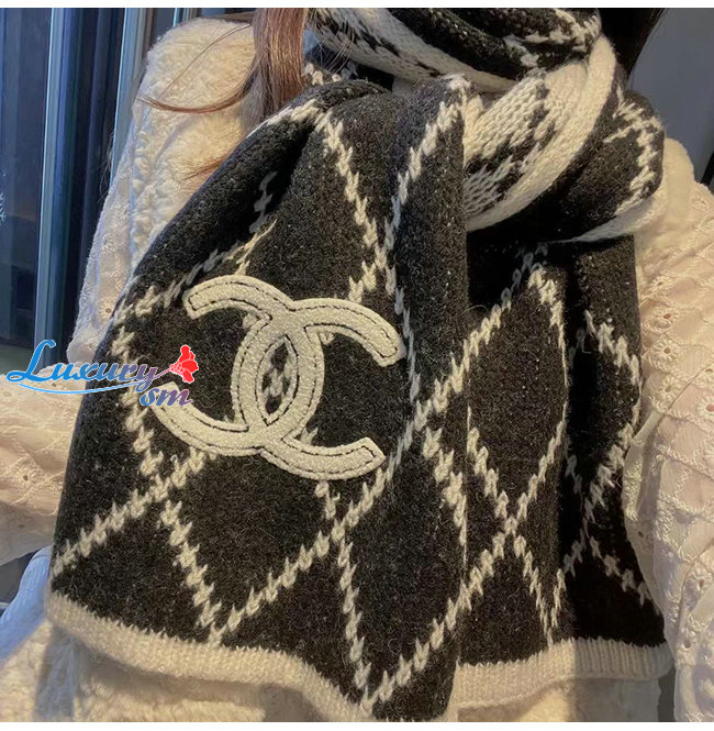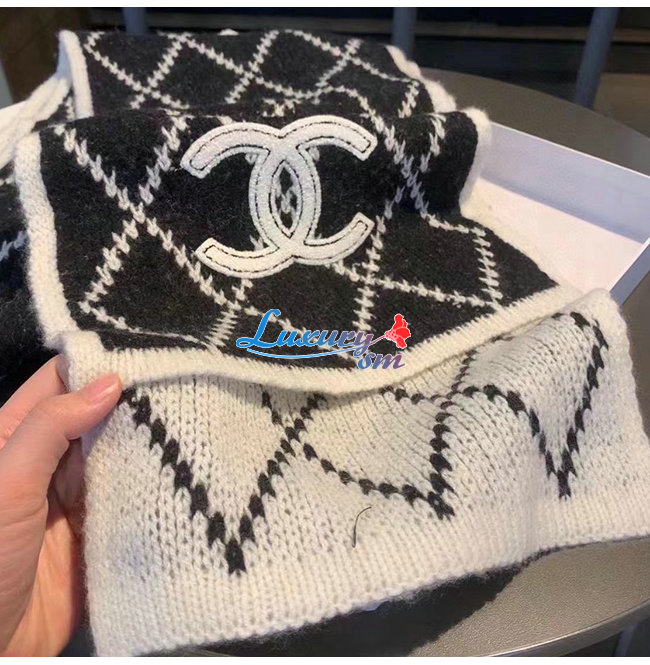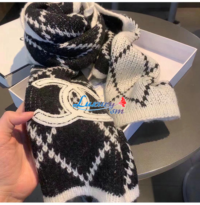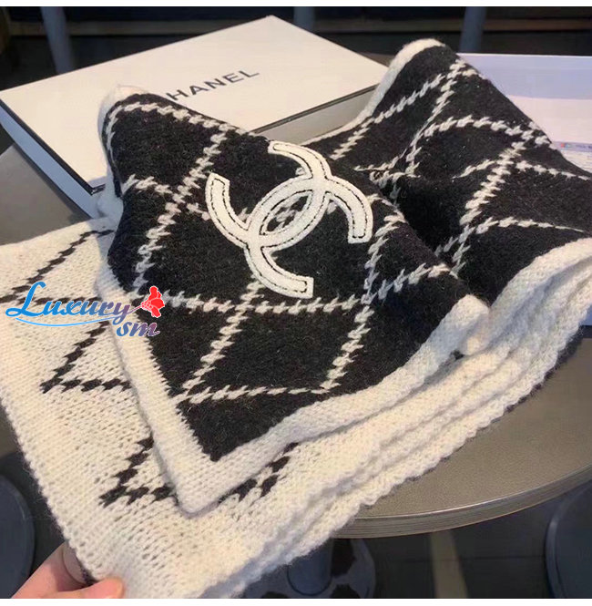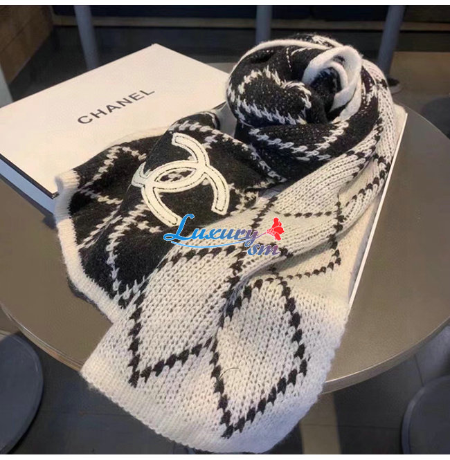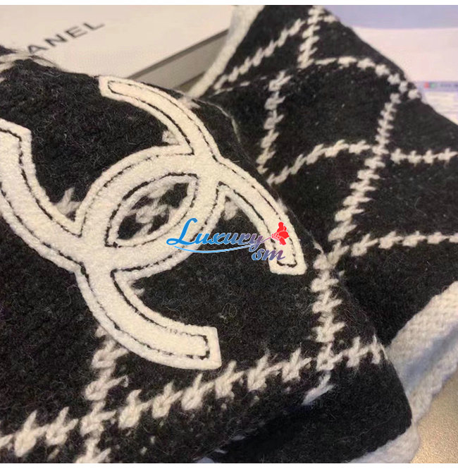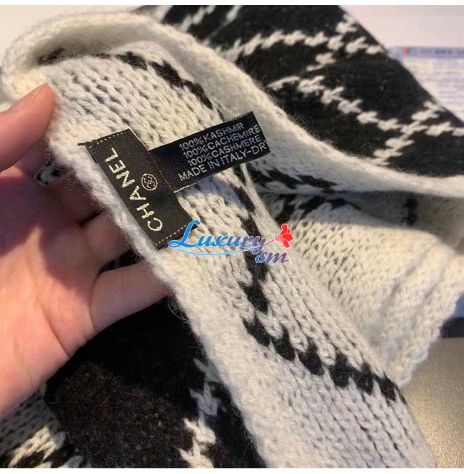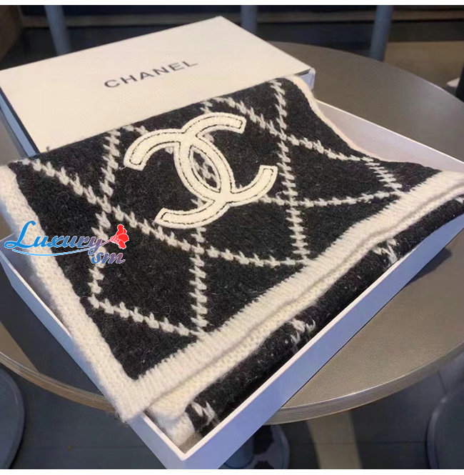 CHANEL-10181 샤넬 블랙/화이트 울 스카프