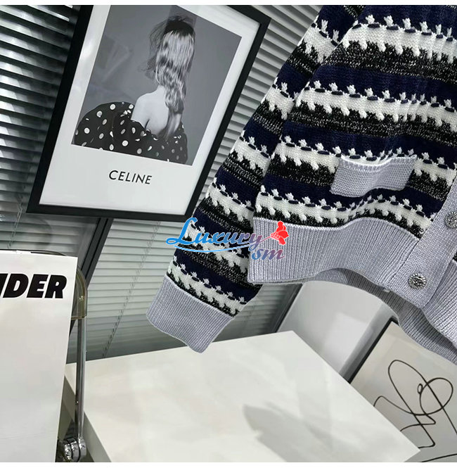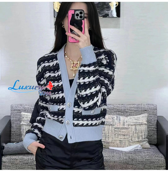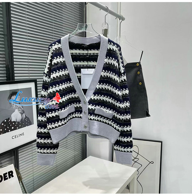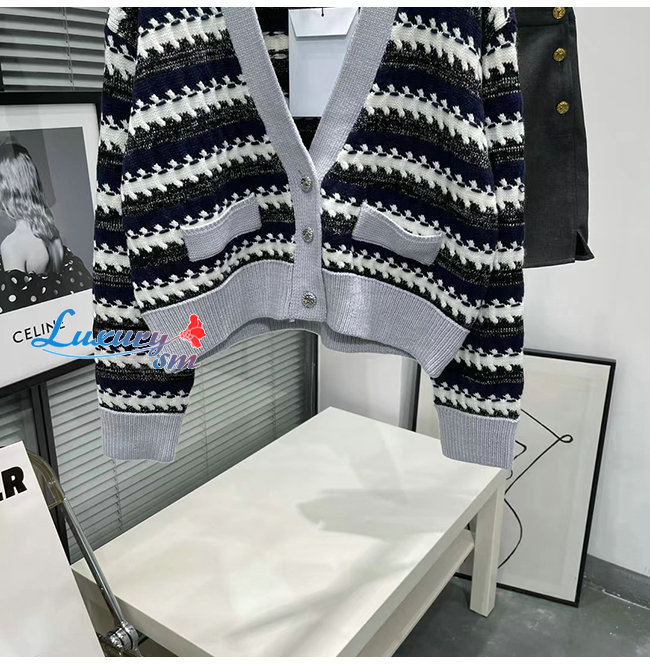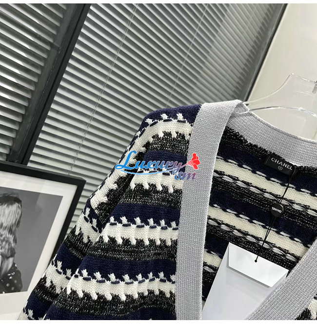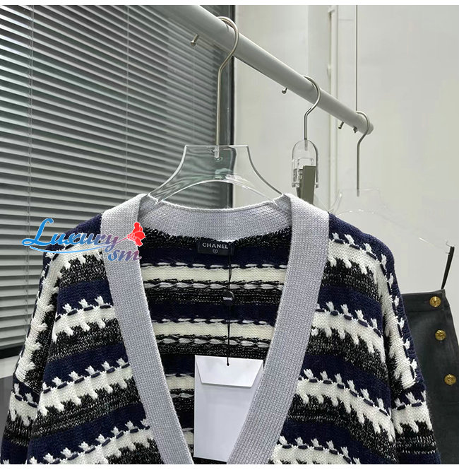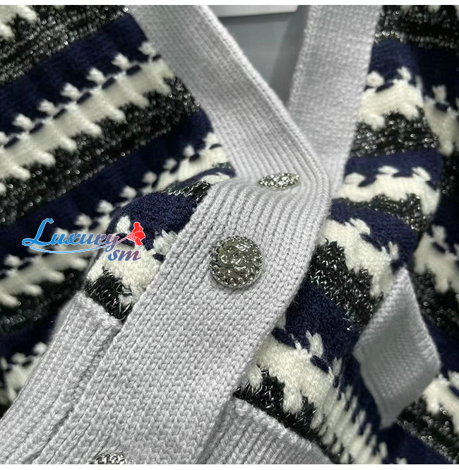 CHANEL-101811 샤넬 네이비/그레이 니트 코튼 가디건 여성용