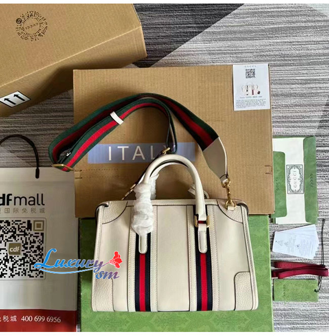 [스페셜오더]GUCCI-715772 1044 구찌 화이트/블랙 스몰 캔버스 탑 핸들백