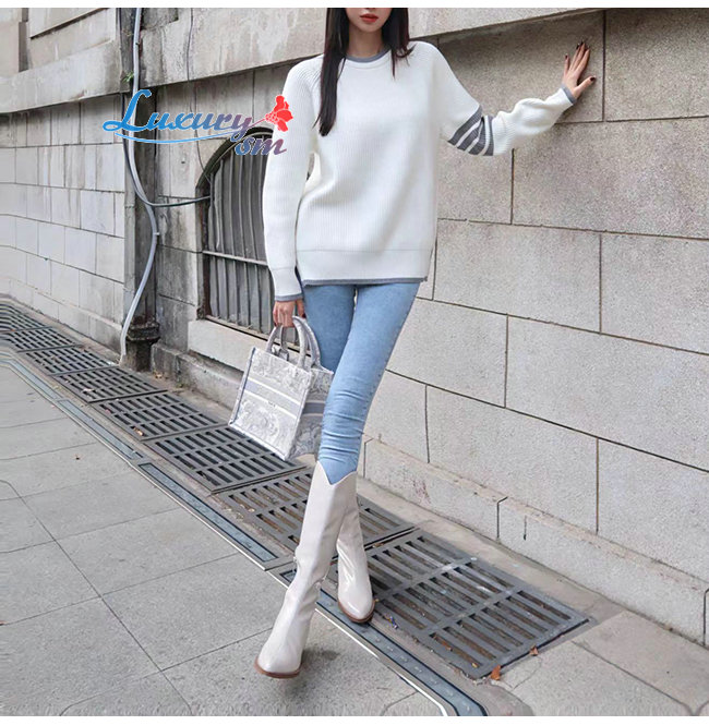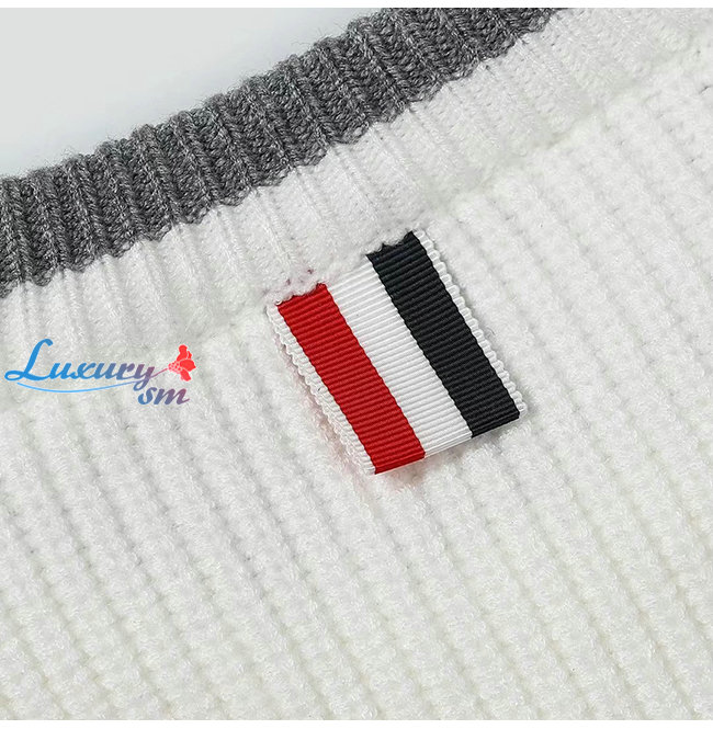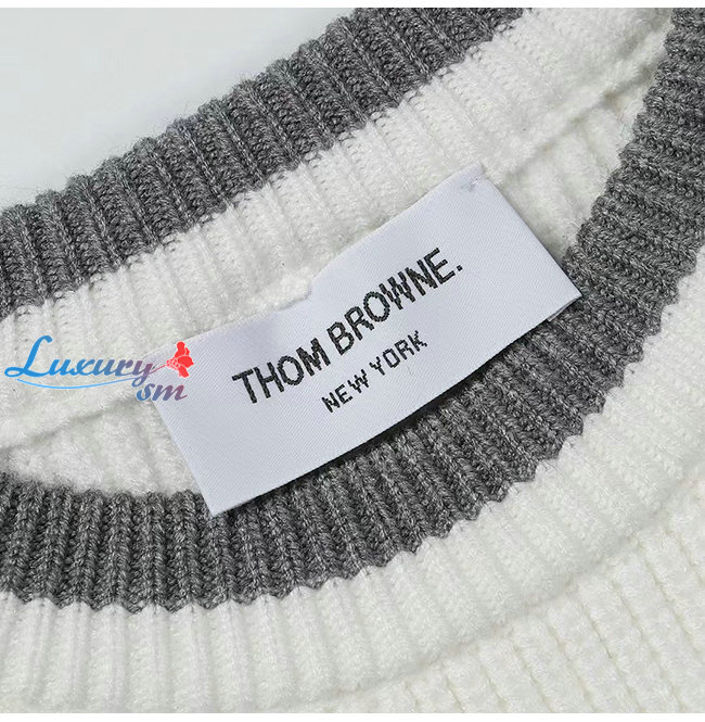 THOM BROWNE-11026 톰 브라운 화이트 스트라이프 장식 스웨터 남여공용