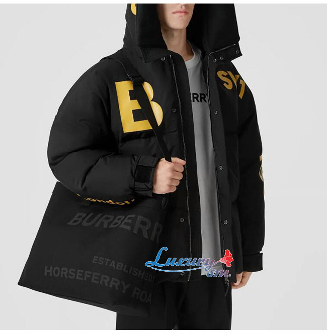 [스페셜오더]BURBERRY-80262331 버버리 블랙 로고 프린트 나일론 토트