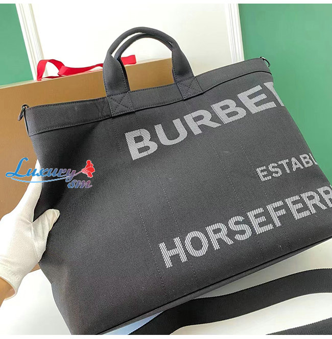 [스페셜오더]BURBERRY-80582021 버버리 블랙 호스페리 프린트 나일론 토트