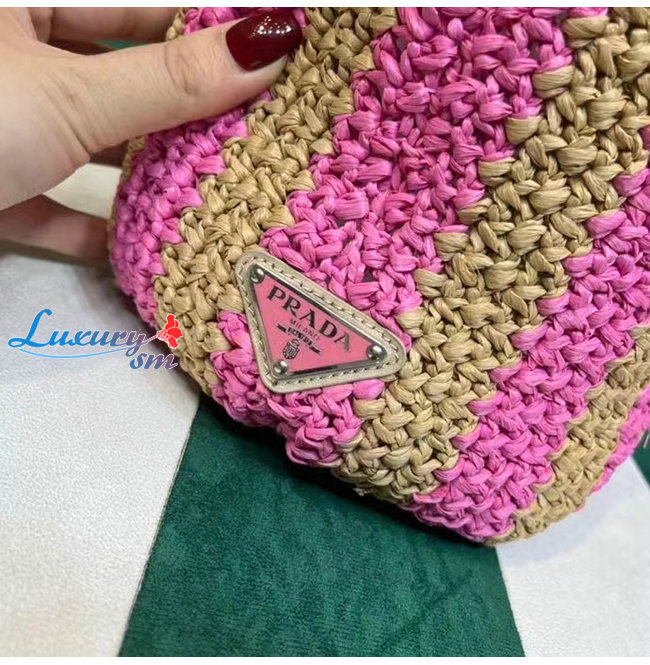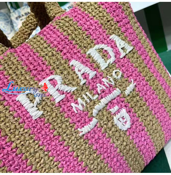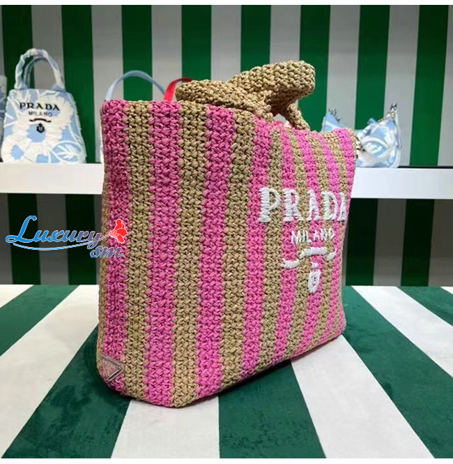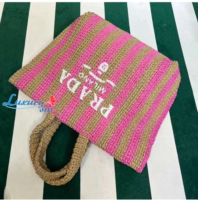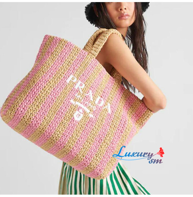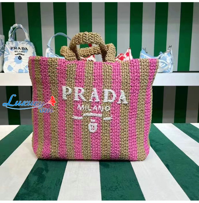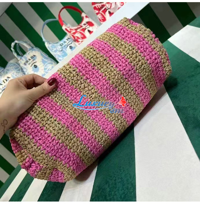 [스페셜오더]PRADA-1BG392 프라다 탠/핑크 대형 라피아 토트 백