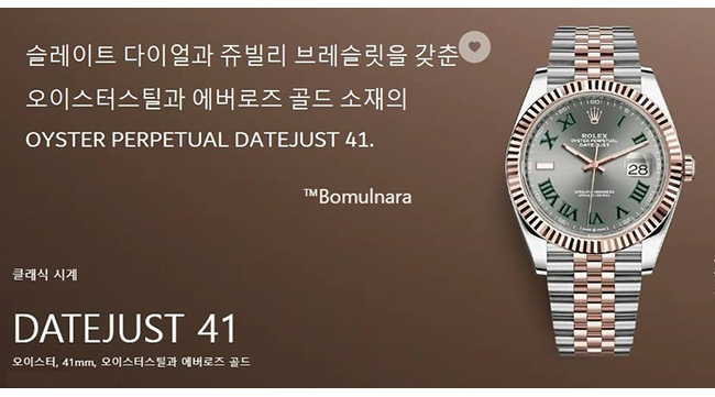 ★[正品완벽재현]ROLEX-롤렉스 데이트저스트 18K옐로우 골드 904L스틸 샴페인 다이얼 클래식 워치 41mm 가격 : 1,560,000원