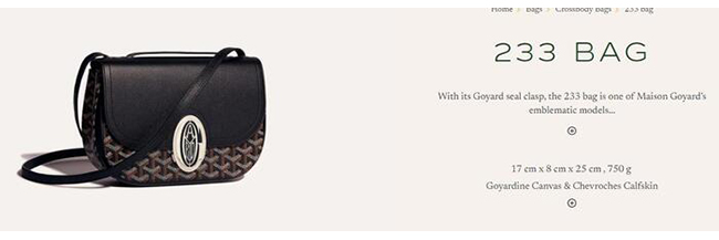 233 가방은 고야드의 상징적인 모델 중 하나이다.