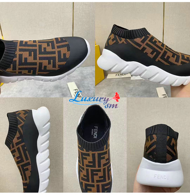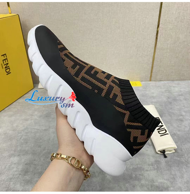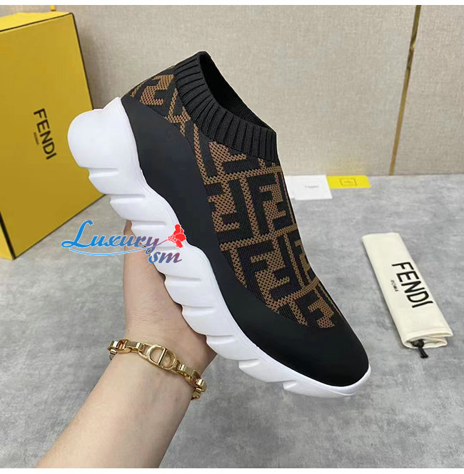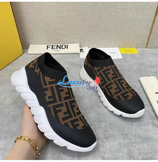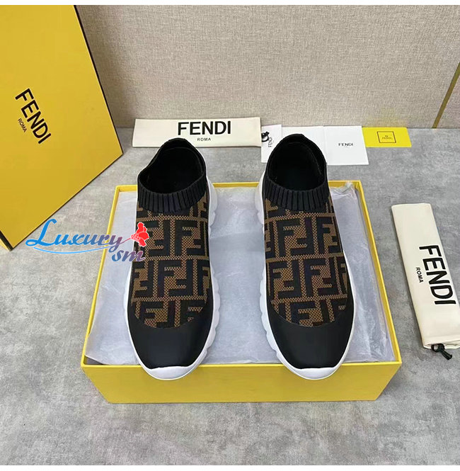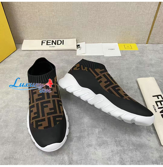 FENDI-7E1254 펜디 브라운 테크니컬 패브릭 더블 F 스니커즈 남성용
