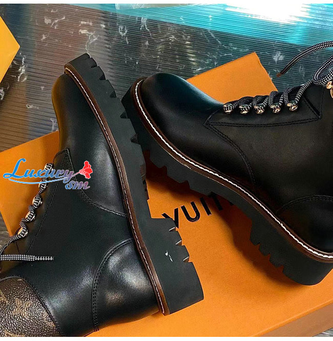 LOUIS VUITTON-루이비통 블랙 카프스킨 모노그램 앵클 부츠