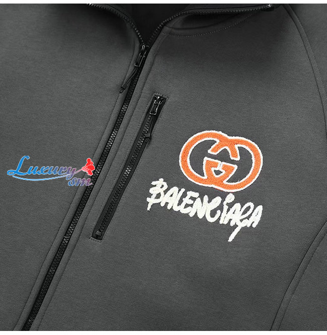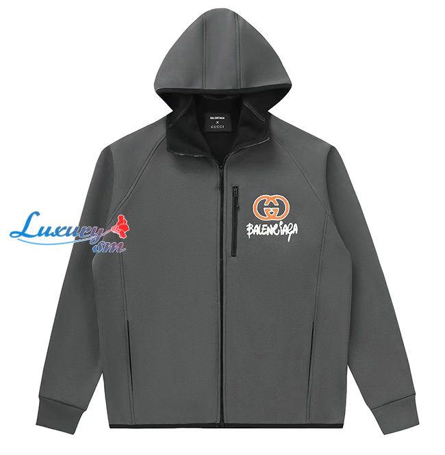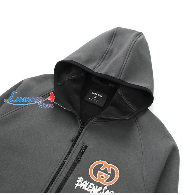 GUCCI-12201 구찌 그레이 구찌 X 발렌시아가 콜라보 아플리케 장식 후드 재킷 남여공용