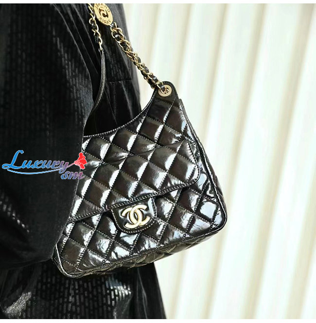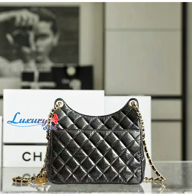 [스페셜오더]CHANEL-AS3690 샤넬 블랙 샤이니 크럼플드 카프스킨 호보 핸드백