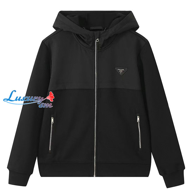 PRADA-12266 프라다 블랙 트라이앵글 로고 후드 재킷 남성용